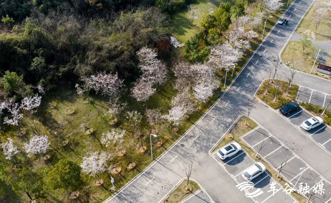 自龙灵山沿车谷大道、东风大道高架进入车城北路,一路繁花相迎,更有唯美的“樱花车站”,解锁春日限定浪漫。