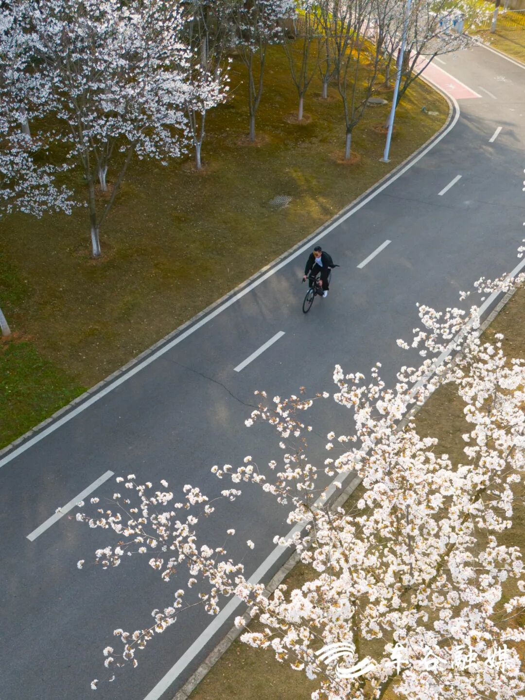 微风轻拂,点点樱瓣翩然飘落,一场缤纷“樱花雨”不期而至,为这绚丽春日更添一笔诗意。