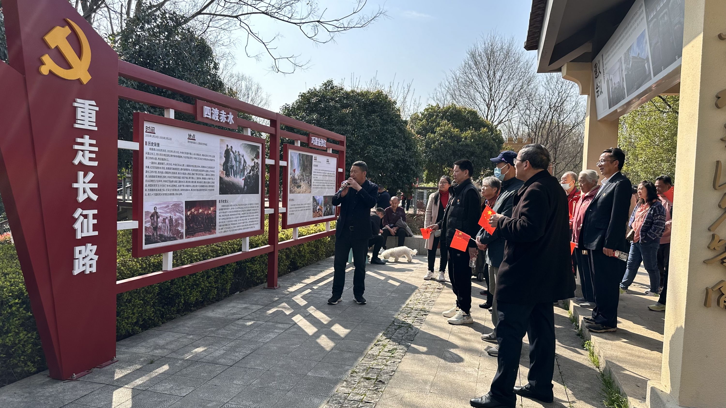 在主持人的讲解下,全体党员边走边看边听,回顾了红军长征的艰辛历程。了解到四渡赤水、强渡大渡河、飞夺泸定桥等伟大军事奇迹,大家被红军战士的英勇与牺牲精神所感动,激发出勇担时代使命的责任感。