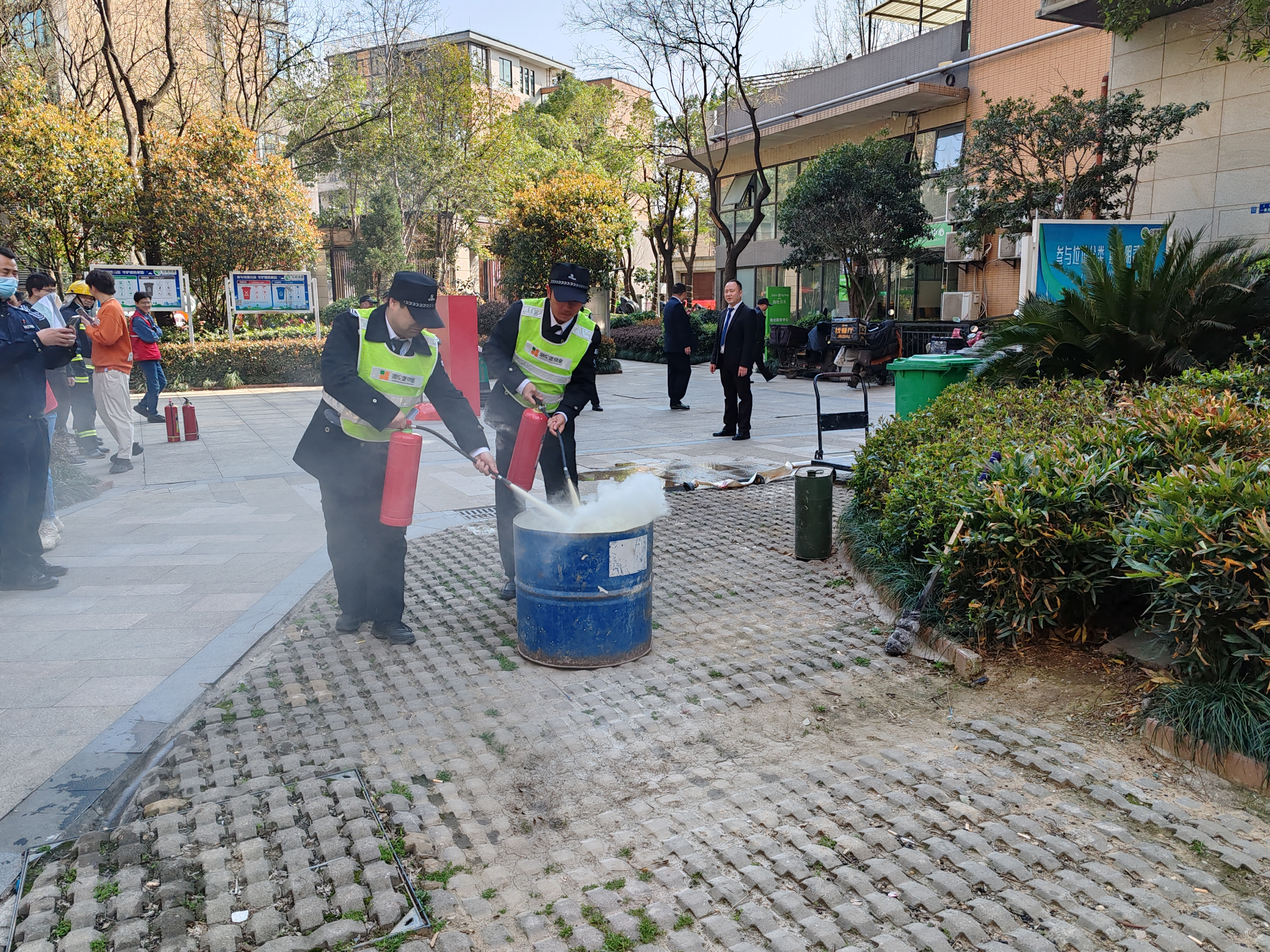 同时,物业消防负责人在现场进行总结讲解,居民如何正确、迅速地应对火灾,确保自身安全,如何正确使用灭火器扑灭火源。