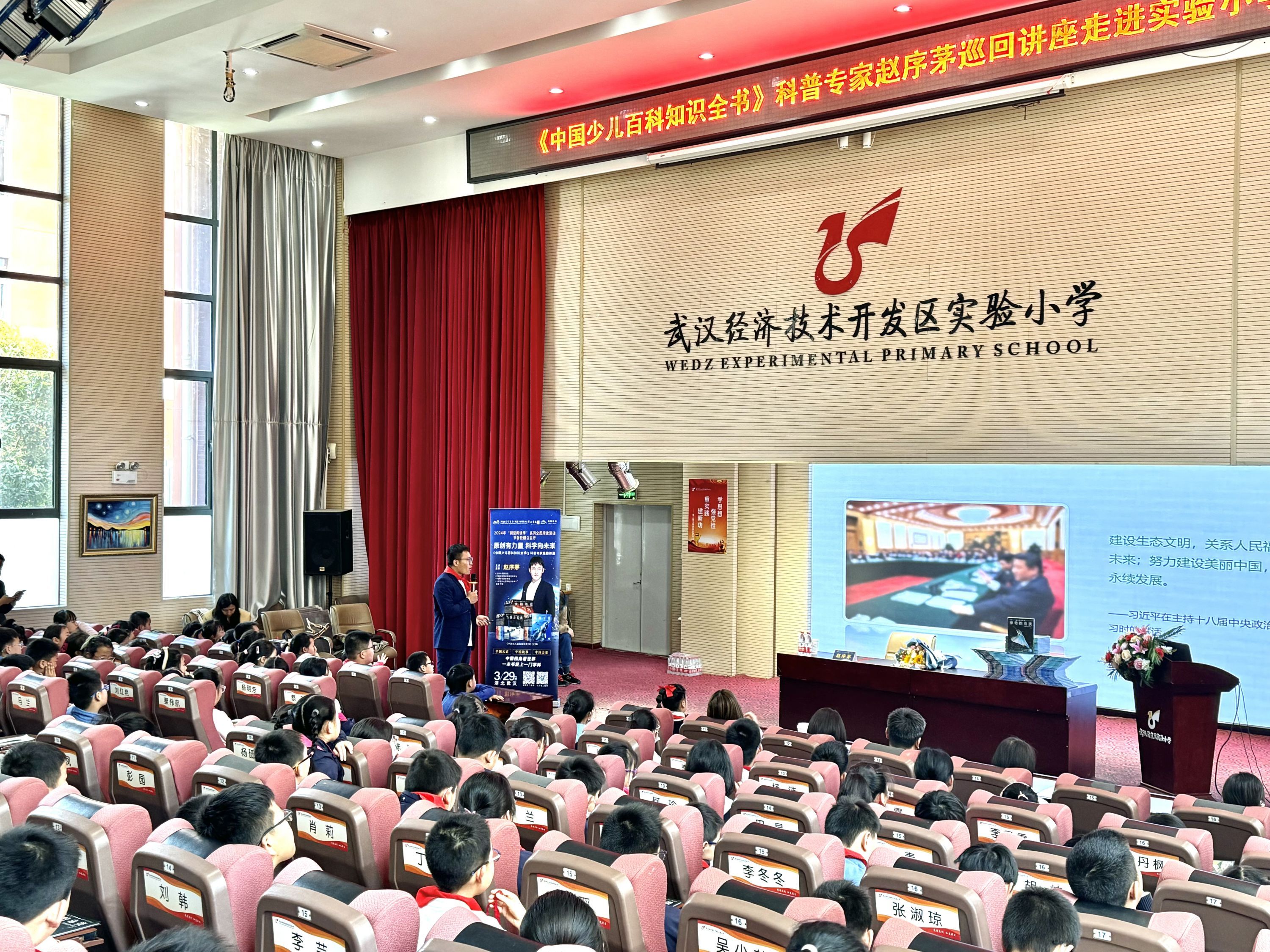 车谷融媒4月4日讯 阅读点亮人生,书香润泽校园。在世界爱鸟日来临之际,3月29日,武汉经开区实验小学联合新华集团、海豚传媒特邀全国科普作家、中国科学院动物研究所博士赵序茅来到武汉经开区实验小学,开展“讲给孩子的生态文明”的主题分享,帮助学生了解生态文明,激发学生的阅读兴趣。
