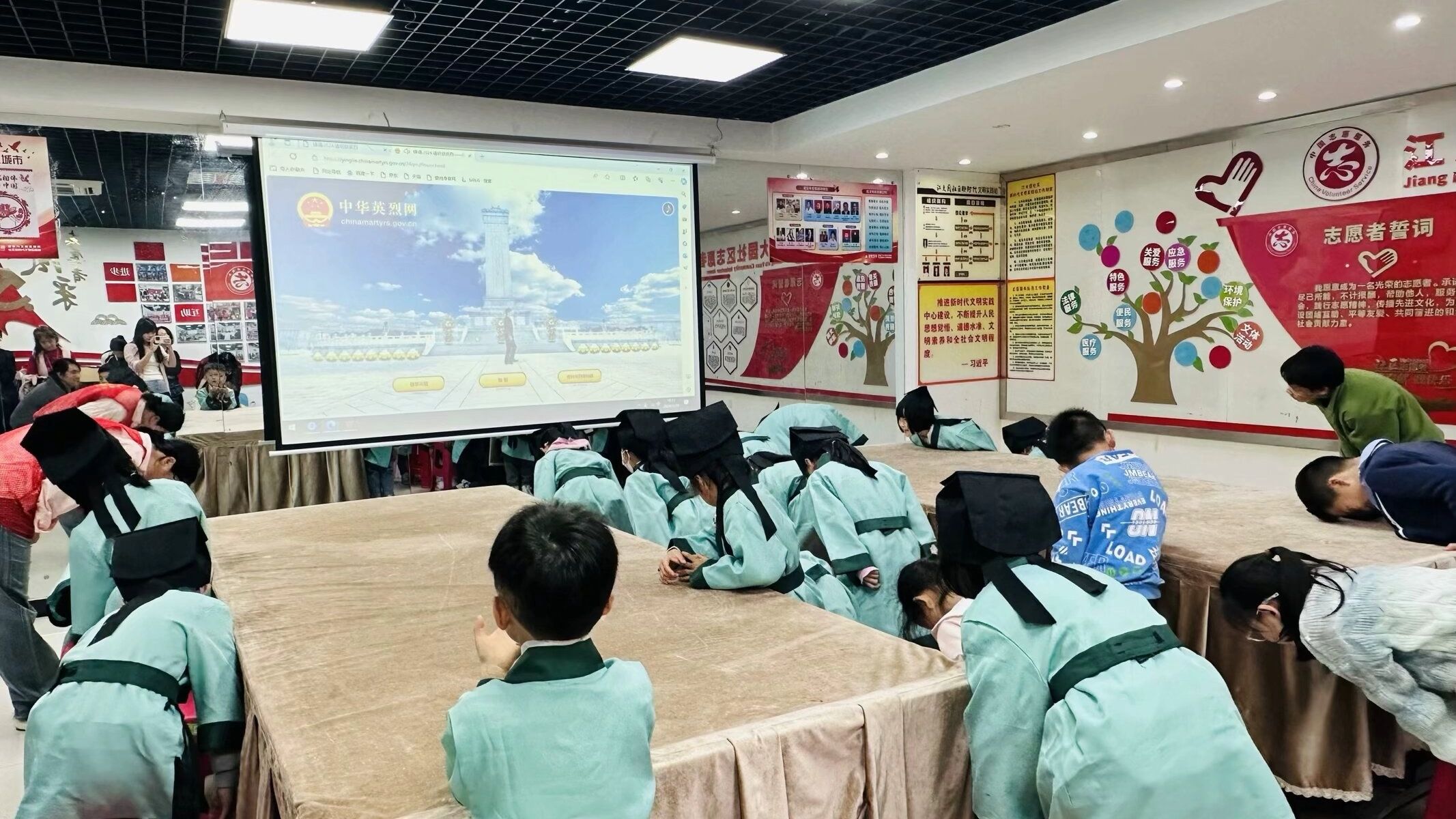 随后,现场志愿者、家长和孩子们共同面向“中华英烈网”进行云祭祀,全体人员肃立在屏幕前,庄严地三鞠躬表达对革命先烈的无比崇敬和深切缅怀。