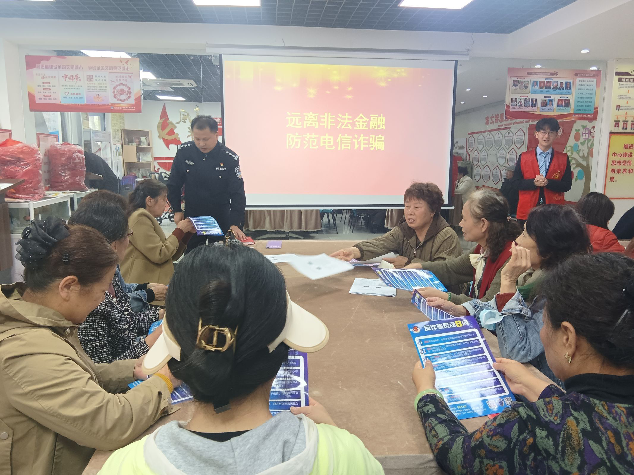 车谷融媒4月4日讯 4月1日,武汉经开区沌阳街道江大园社区联合湖滨派出所民警和民生银行沌口车城社区支行组织开展联动服务,为辖区居民带来“远离非法金融,防范电信诈骗”反诈知识宣传讲座。