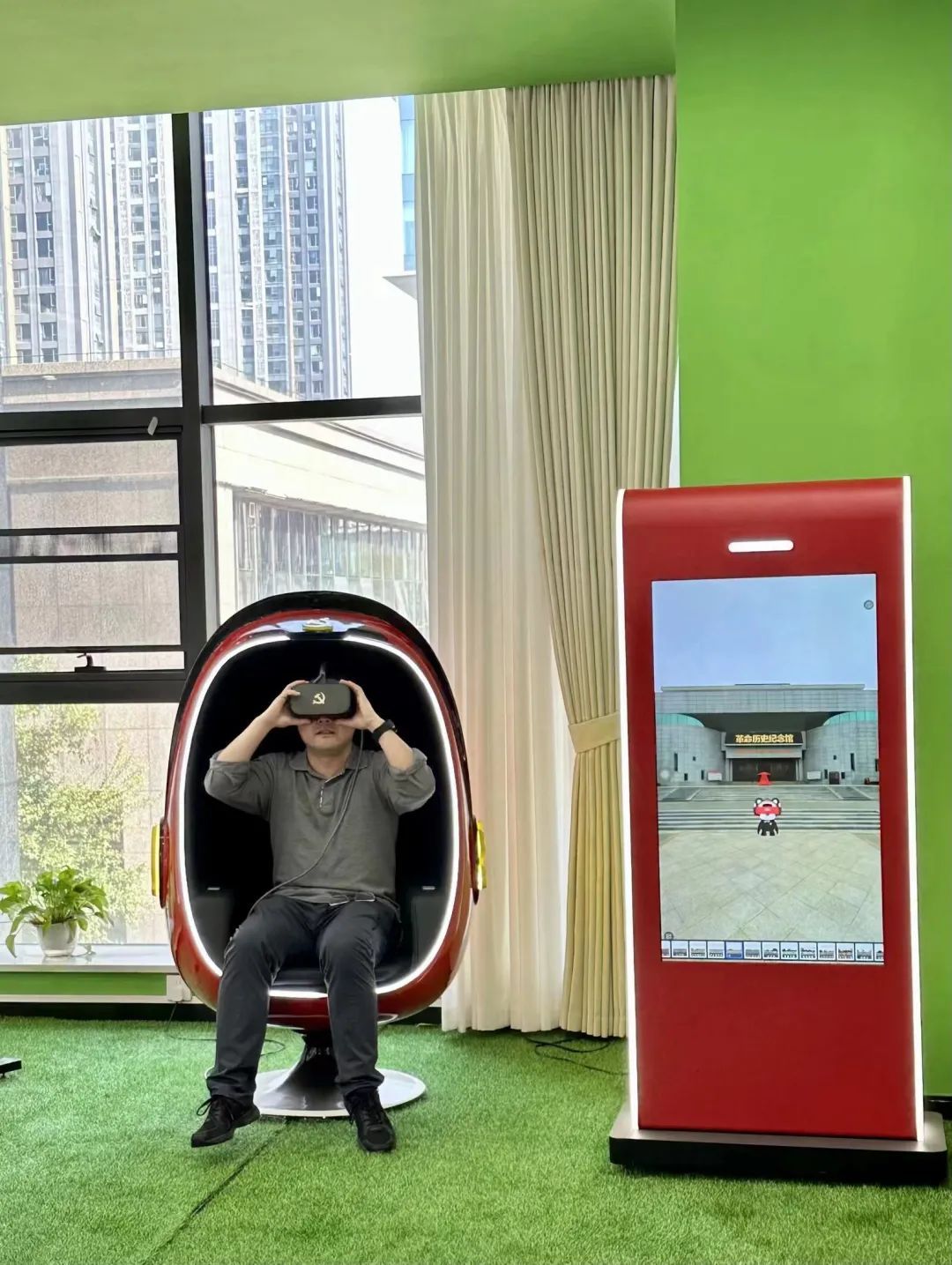 党员们透过VR设备“身临其境”般踏访“中共一大会址”,瞻仰“南昌八一起义纪念馆”,寻觅红军长征出发的地方“中央红军长征出发纪念馆”……三维立体技术栩栩如生地还原了建党时期的样貌和百年历史的沧桑巨变。