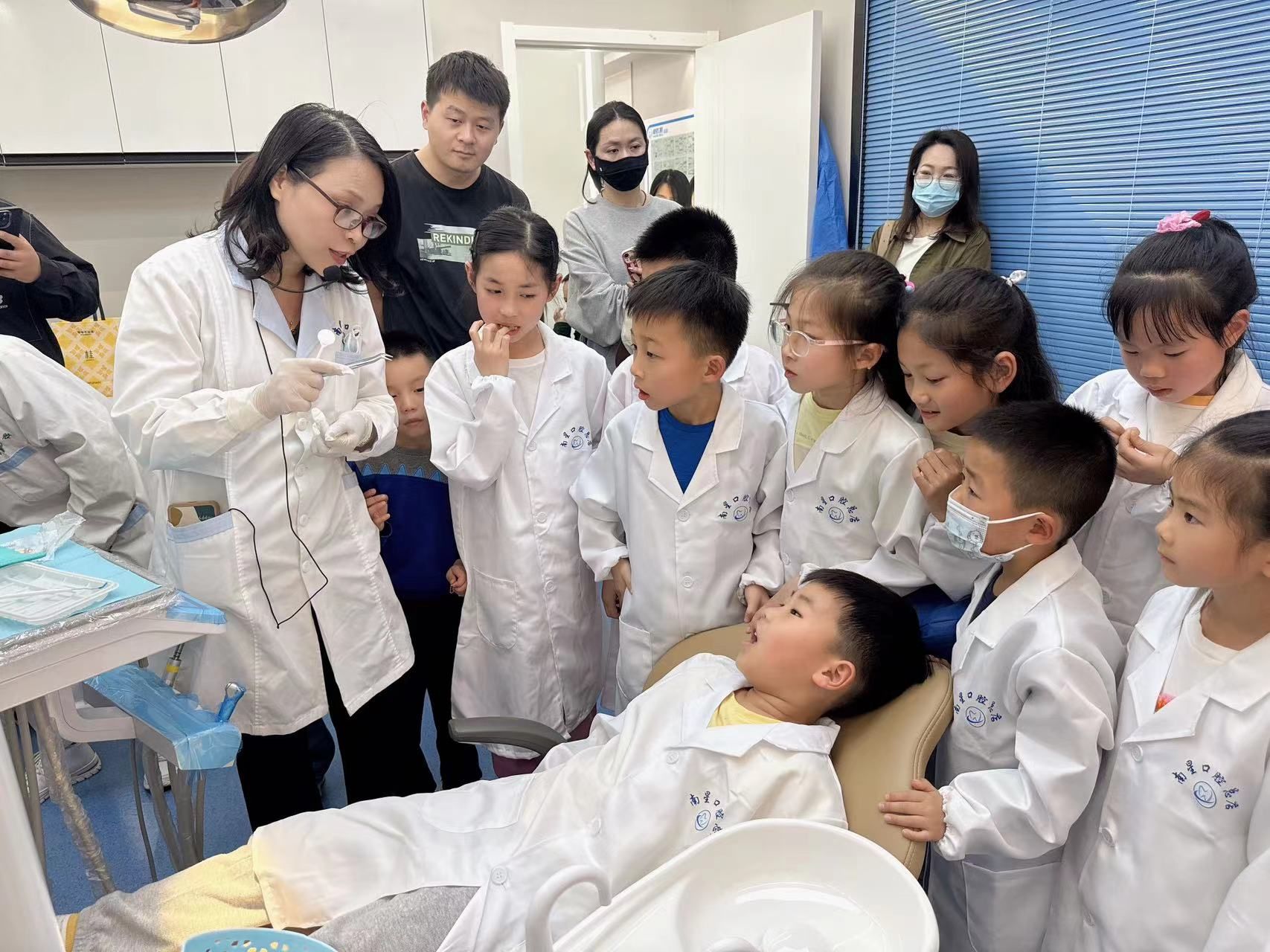 车谷融媒4月5日讯 近日,沌口街道永济社区新时代文明实践站联合社区“社商”联盟商户南星口腔医院,开展小小牙医职业体验活动亲子活动,吸引了15组亲子家庭参与。