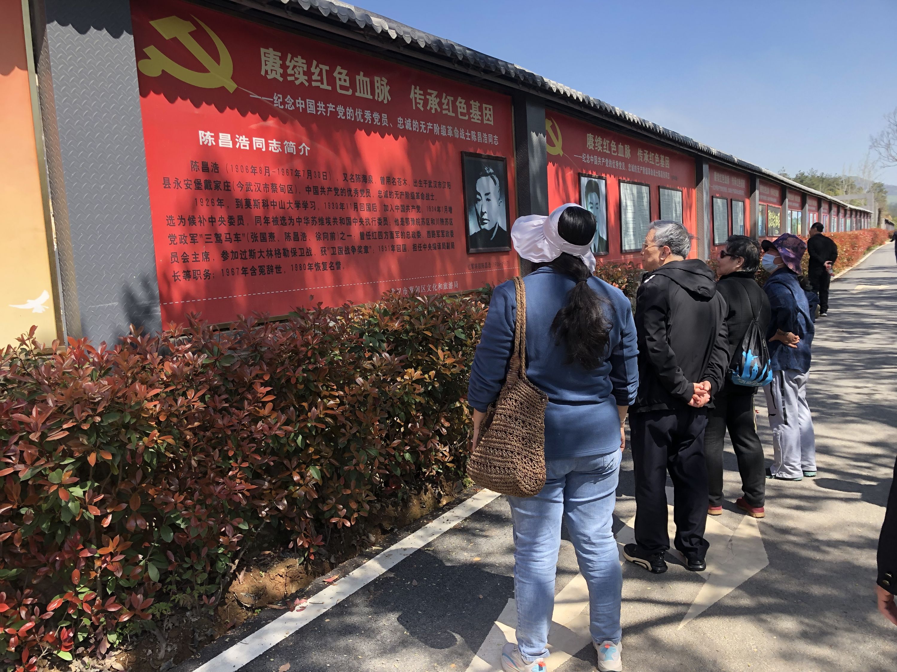 在陈昌浩陵园,党员们清扫墓地、敬献花篮、向革命先烈默哀。