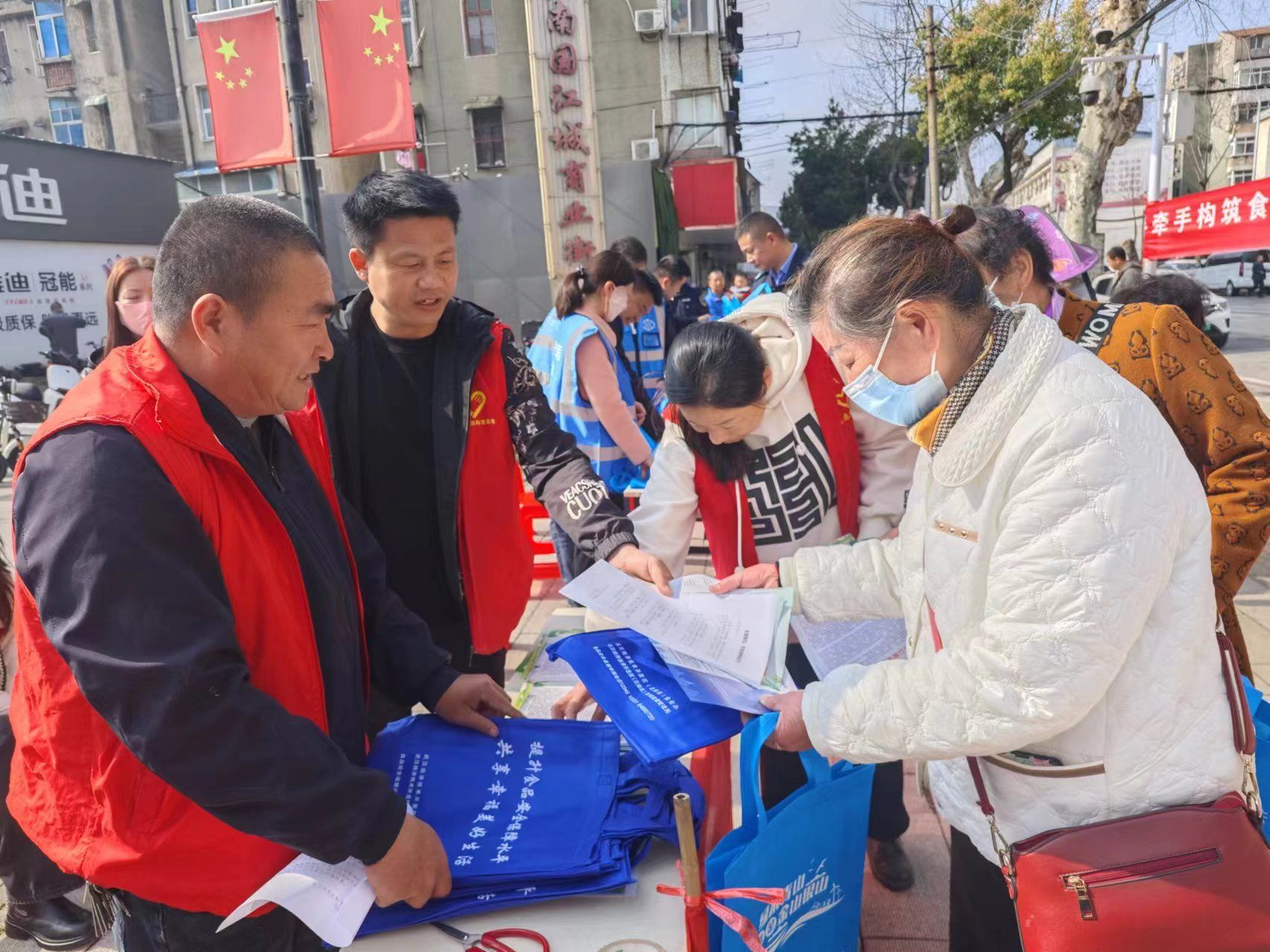 活动现场,社区工作人员、安全员、平安建设志愿服务队的志愿者们分成三个流动小组,向过往群众发放宣传单和宣传袋。在宣传服务点,通过悬挂横幅、设立宣传展台,向现场居民讲解相关知识,提醒群众树立安全意识,引导群众积极参与平安建设,共同维护社会和谐稳定。