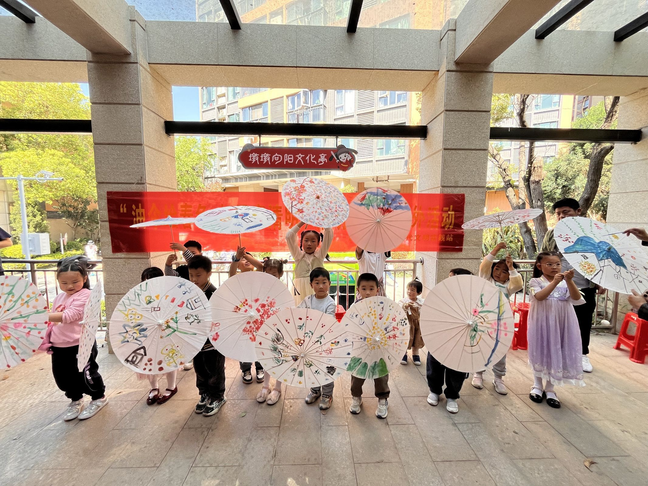 车谷融媒4月9日讯 近日,武汉经开区沌阳街道官士墩社区在墩墩向阳文化亭开展“油伞绘春色”亲子户外活动。