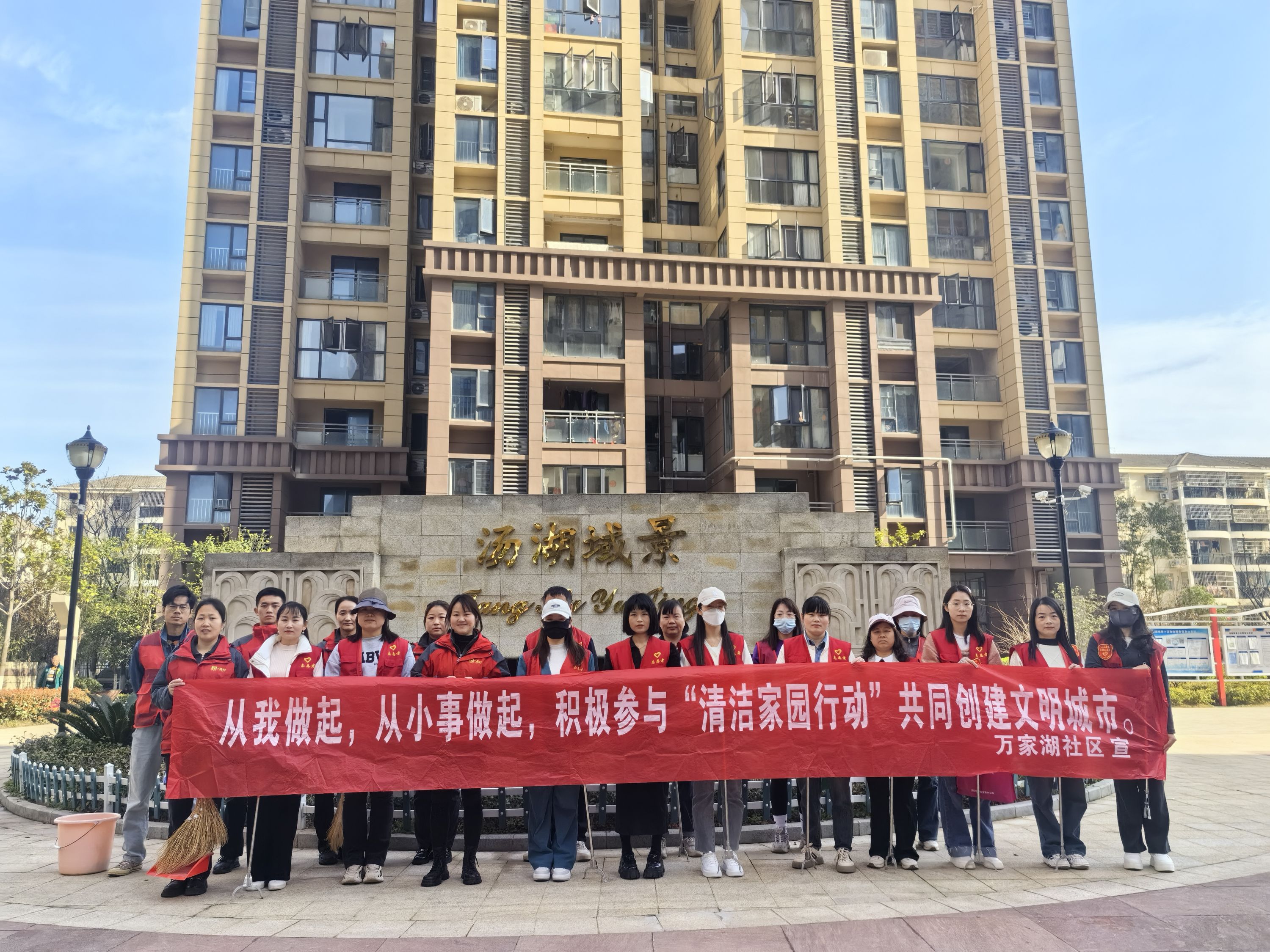 万家湖社区坚持“线上+线下”齐发力,利用微信群、公众号发动志愿队伍,深入辖区开展宣传,引导居民自觉清理卫生,营造“党员争先锋、清脏创新颜”的良好氛围,