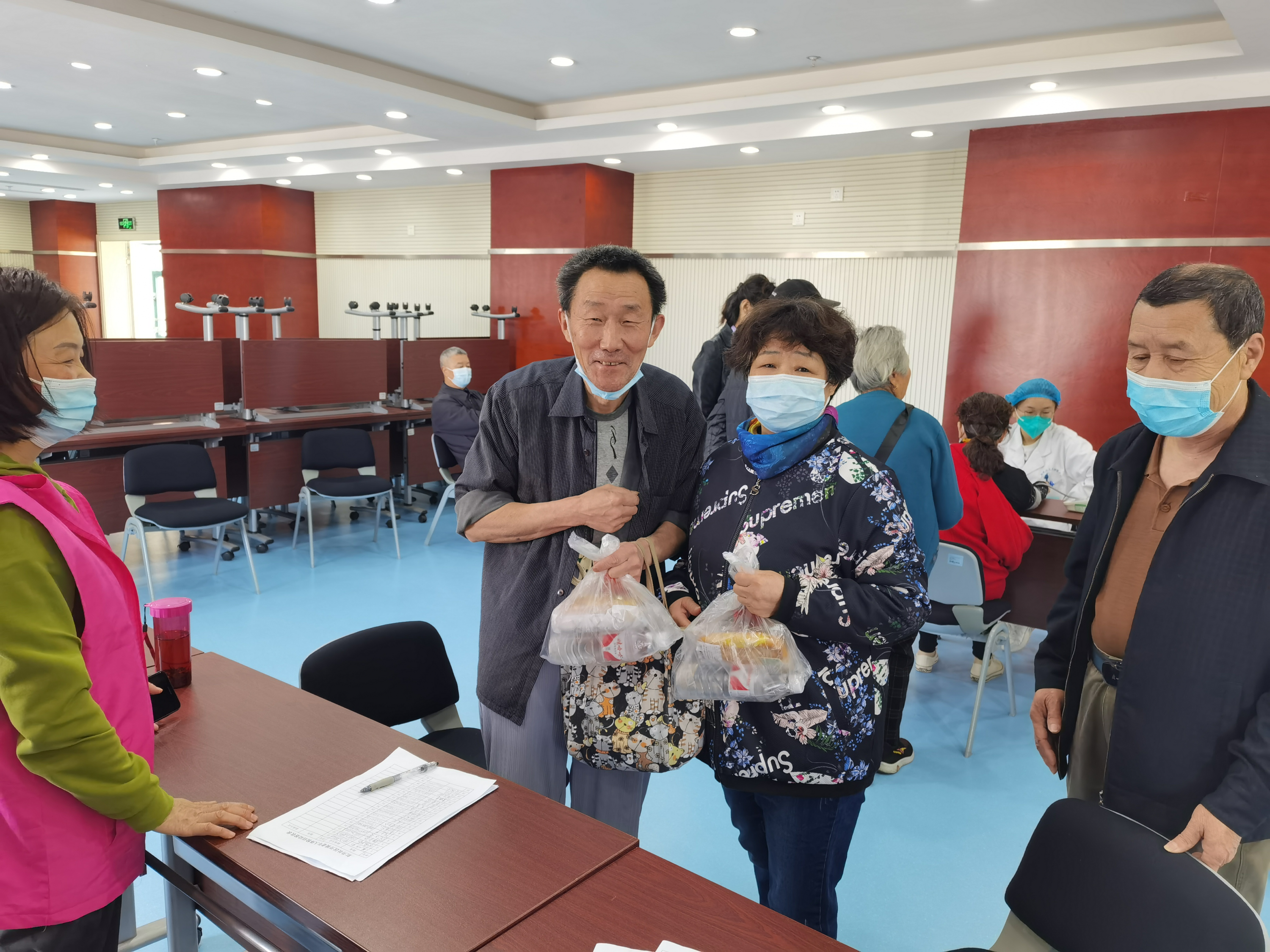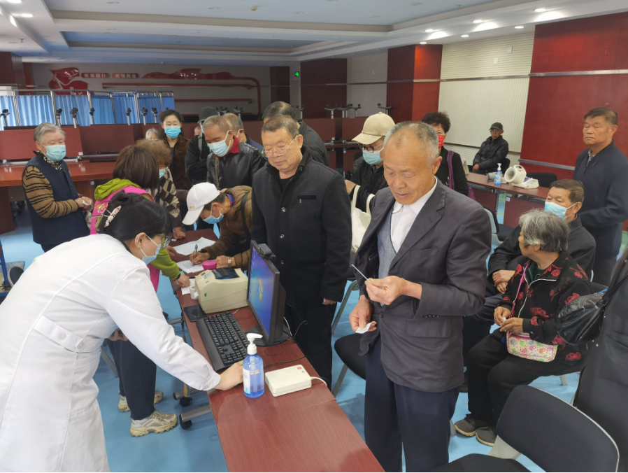 老人们早早地来到医院,在工作人员的指引下进行登记并依次开展体检服务。此次体检项目包含了体格检查、血常规、尿常规、肝功能、肾功能、空腹血糖、血脂(含尿酸)、心电图、腹部B超(肝胆胰脾双肾)、胸片等一系列健康检查项目。