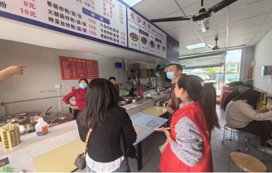 车谷融媒4月12日讯 为了给居民营造安全放心的食品消费环境,4月10日上午,纱帽街道幸福村工作人员与纱帽街道市场监管所所长、食安办主任一起组队来到新开张的幸福便民餐饮服务点,进行食品安全宣传排查活动,督促食品生产经营者落实主体责任。