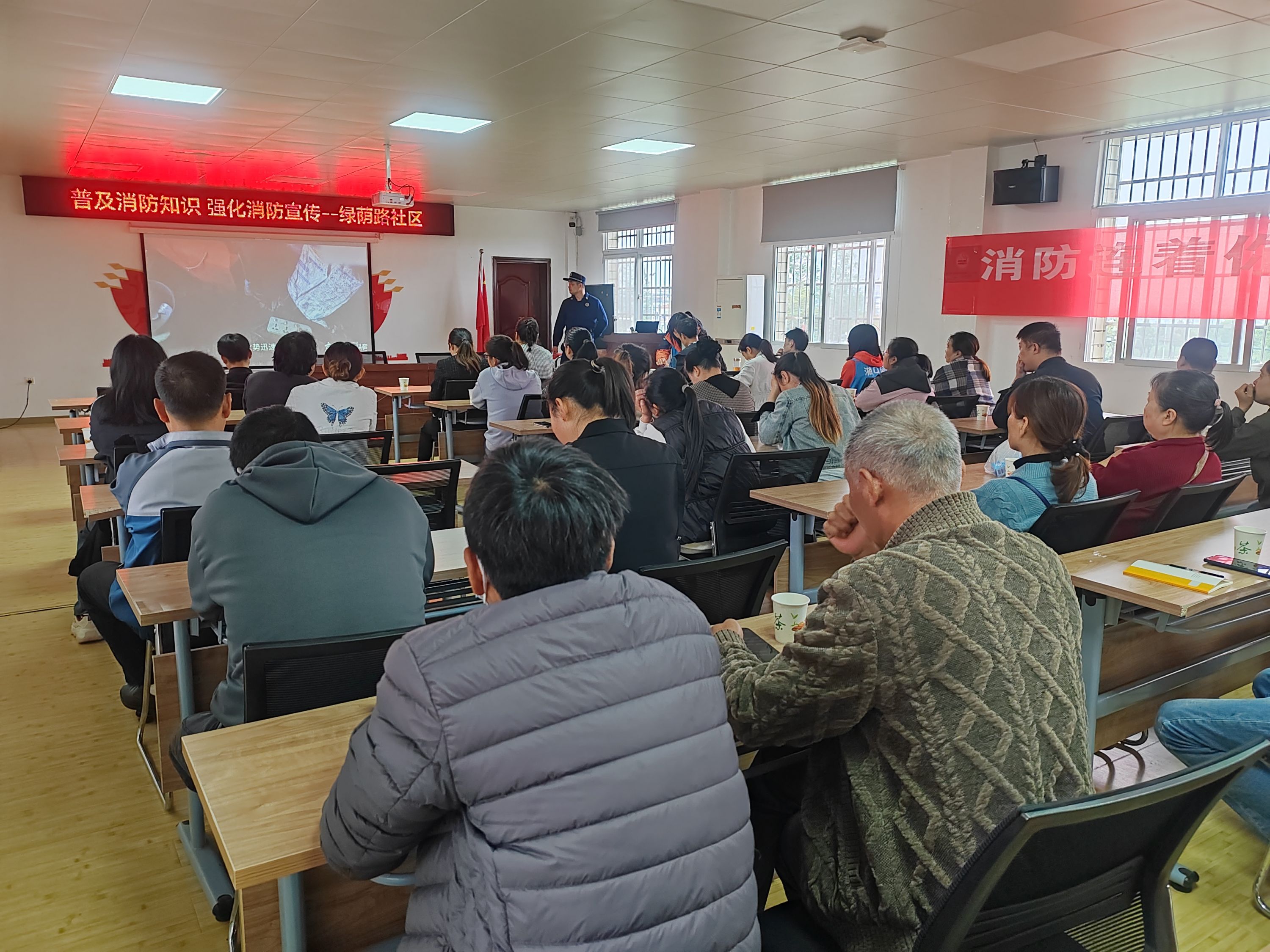 演练开始前,汉南消防救援大队相关负责人为辖区居民带来了一场生动详实的电动车消防安全讲座,他用通俗易懂的语言结合警示教育片细致地讲解了电动车违规停放和充电的危害、发生火灾时的处理方法及如何自救逃生等消防安全知识,让消防安全意识深入人心。