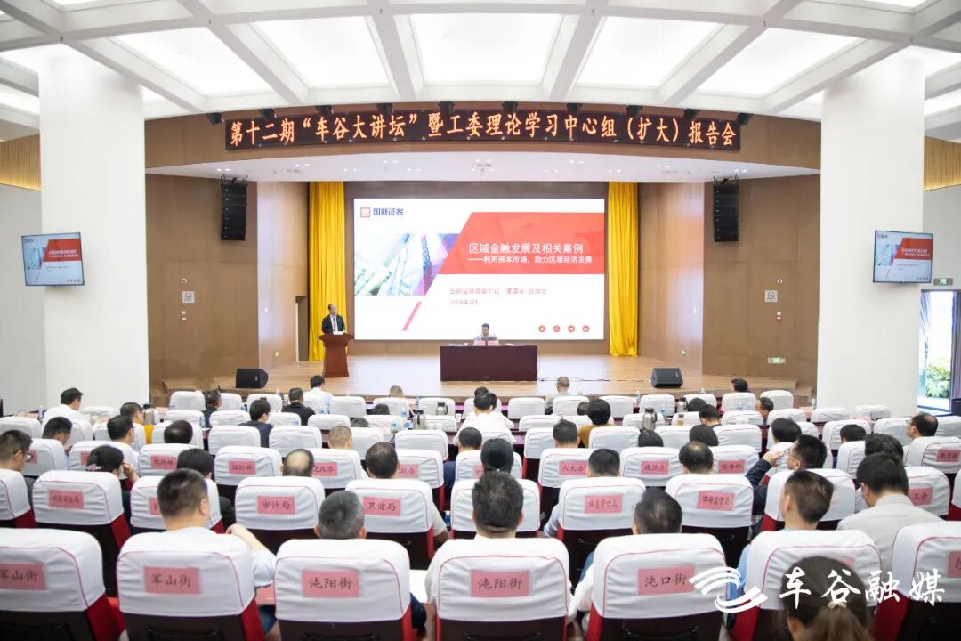 车谷融媒4月16日讯 4月15日,武汉经开区举行第十二期“车谷大讲坛”暨工委理论学习中心组(扩大)报告会。国新证券股份有限公司党委书记、董事长张海文受邀作《区域金融发展及相关案例》专题辅导报告。