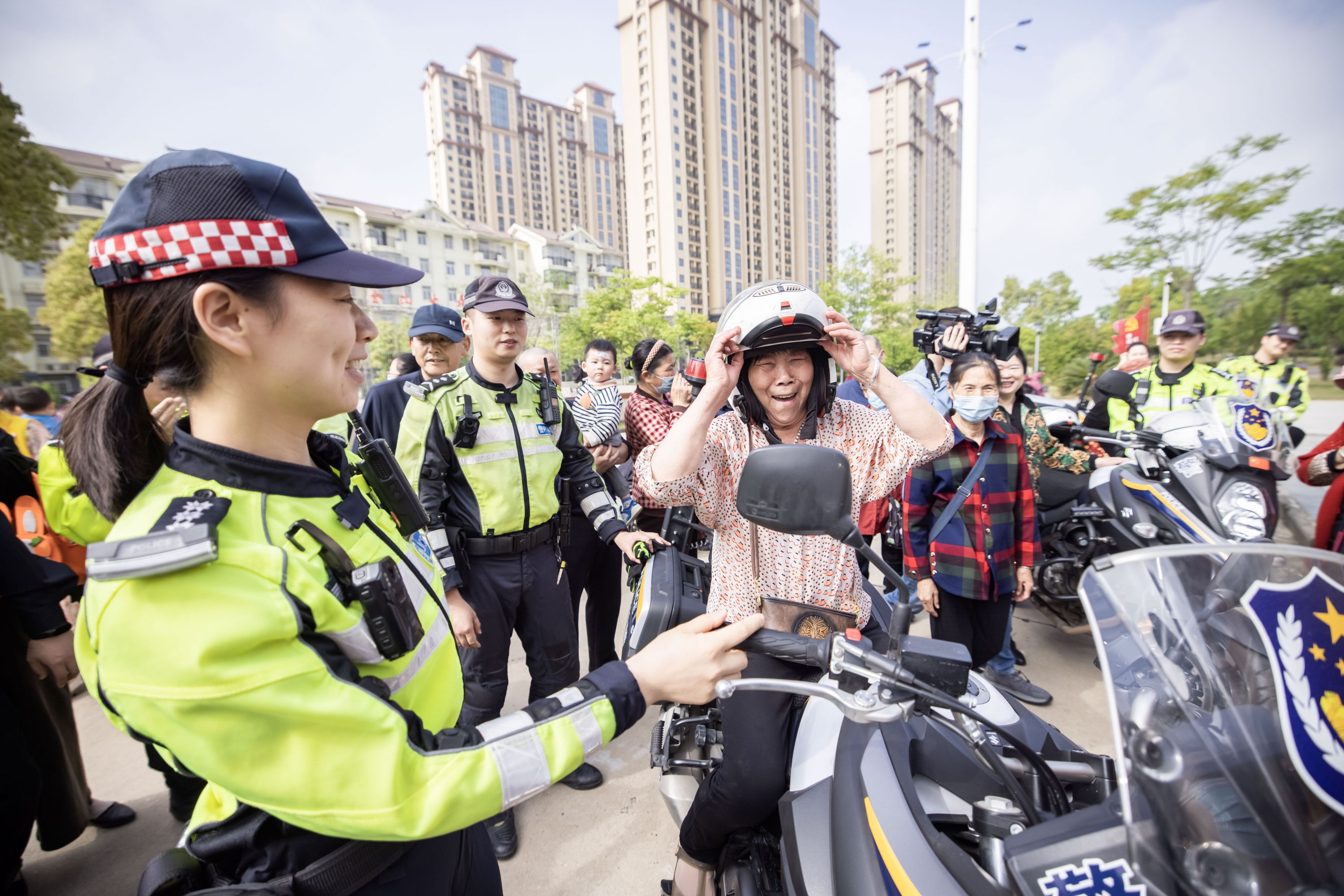 “帅气的‘汉警快骑’是道路上应急救援的机动力量。”民警通过现场展示的警务装备,向群众介绍交通民警日常的警务工作,对比摩托车、电动自行车,普及机动车和非机动车的法律规定,提醒居民群众驾驶摩托车要取得机动车驾驶证。