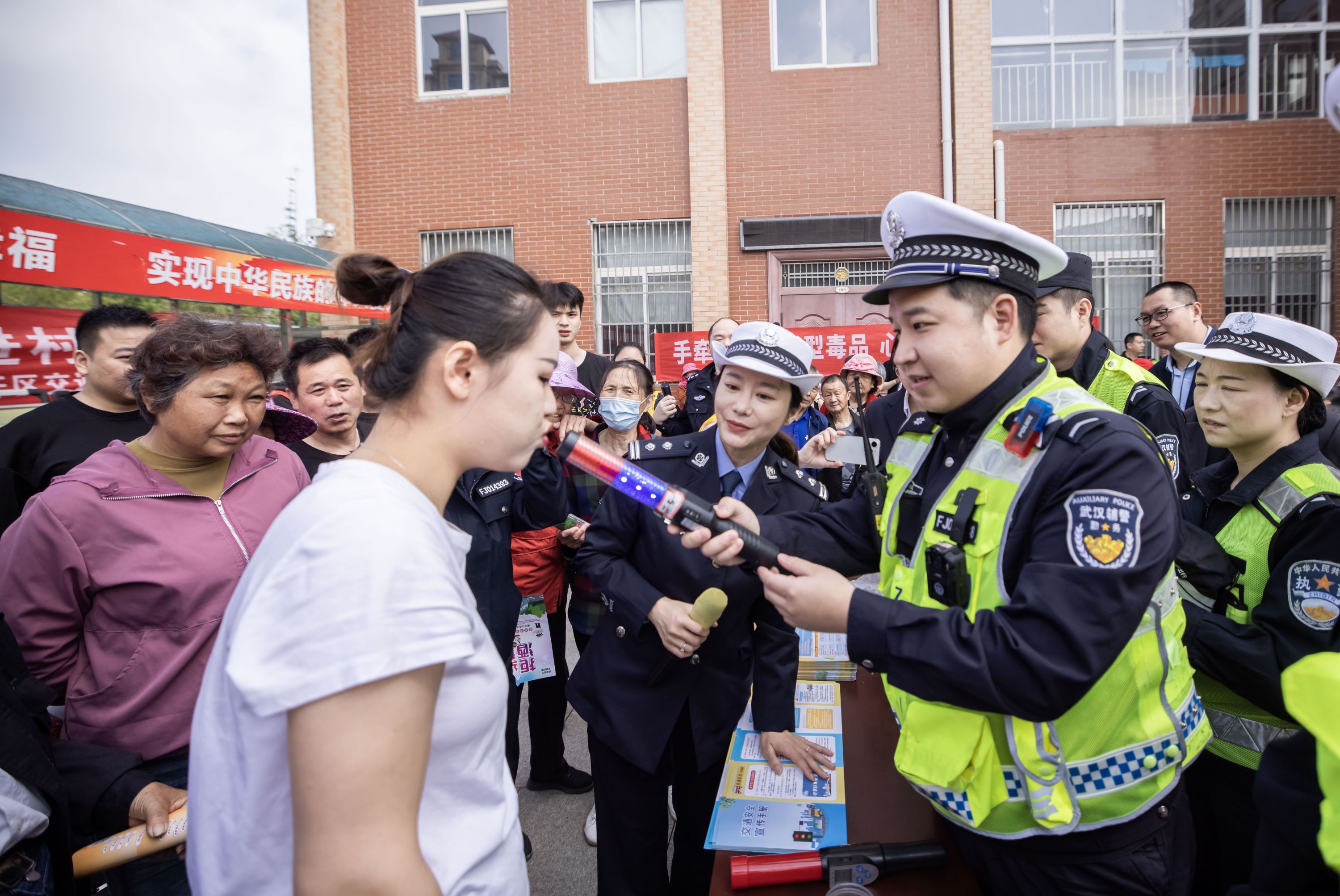 车谷融媒4月19日讯 4月18日上午,武汉经开区交通大队与辖区东荆街派出所一起,组织民警、辅警深入辖区东荆街乌金山社区开展“美丽乡村行”交通安全宣传活动。