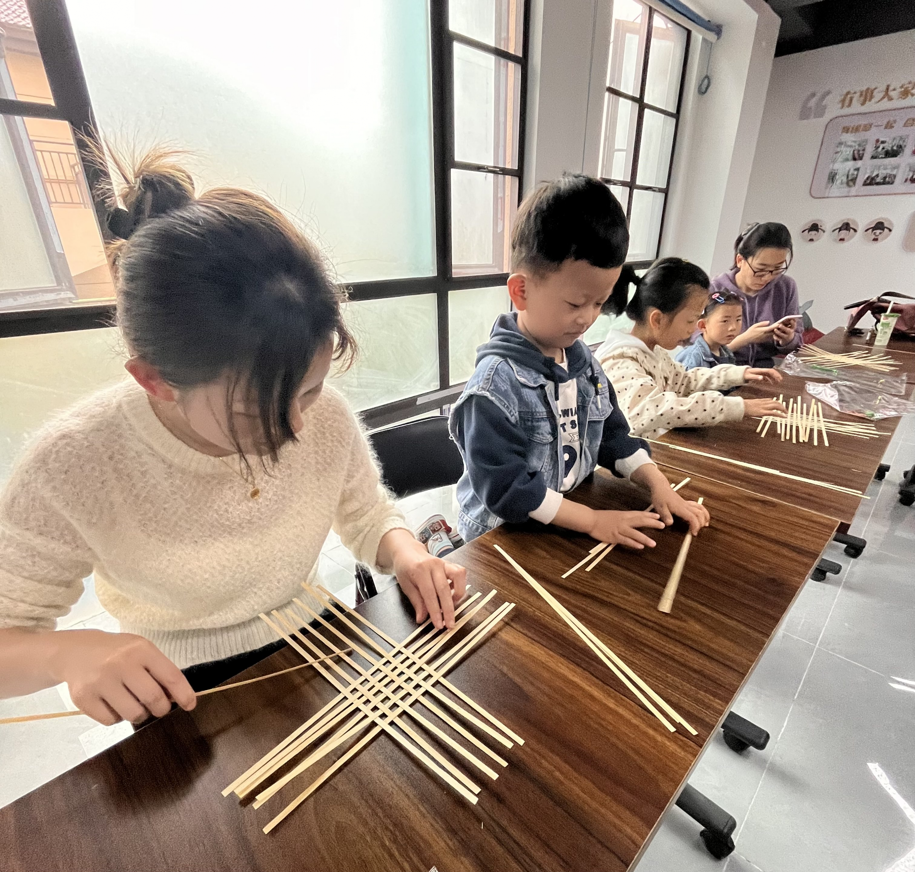 经过近半小时的努力,小朋友们编制出了精美的竹编篮子。用几根纤细的竹条不断来回穿、挑、压,手指一抬一压之间,彰显传统工艺的魅力。