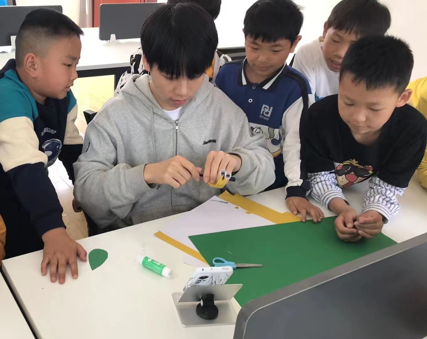 除了创意美术的活动,志愿者们还带领着托管班的学生们开展了一次富有创意的手工制作活动——制作蜗牛。孩子们怀着极大的兴趣和好奇心,聚精会神地听着志愿者讲解蜗牛的特点和制作步骤。随后,孩子们充分发挥自己的想象力,用彩纸和胶水打造出了一个个形态各异的蜗牛。