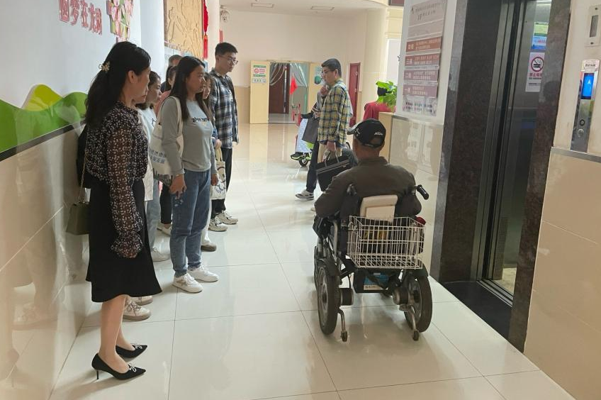 宣讲结束后,大家先后去往龙湖社区居委会、龙湖社区阳光家园等地开始实地体验无障碍设施。