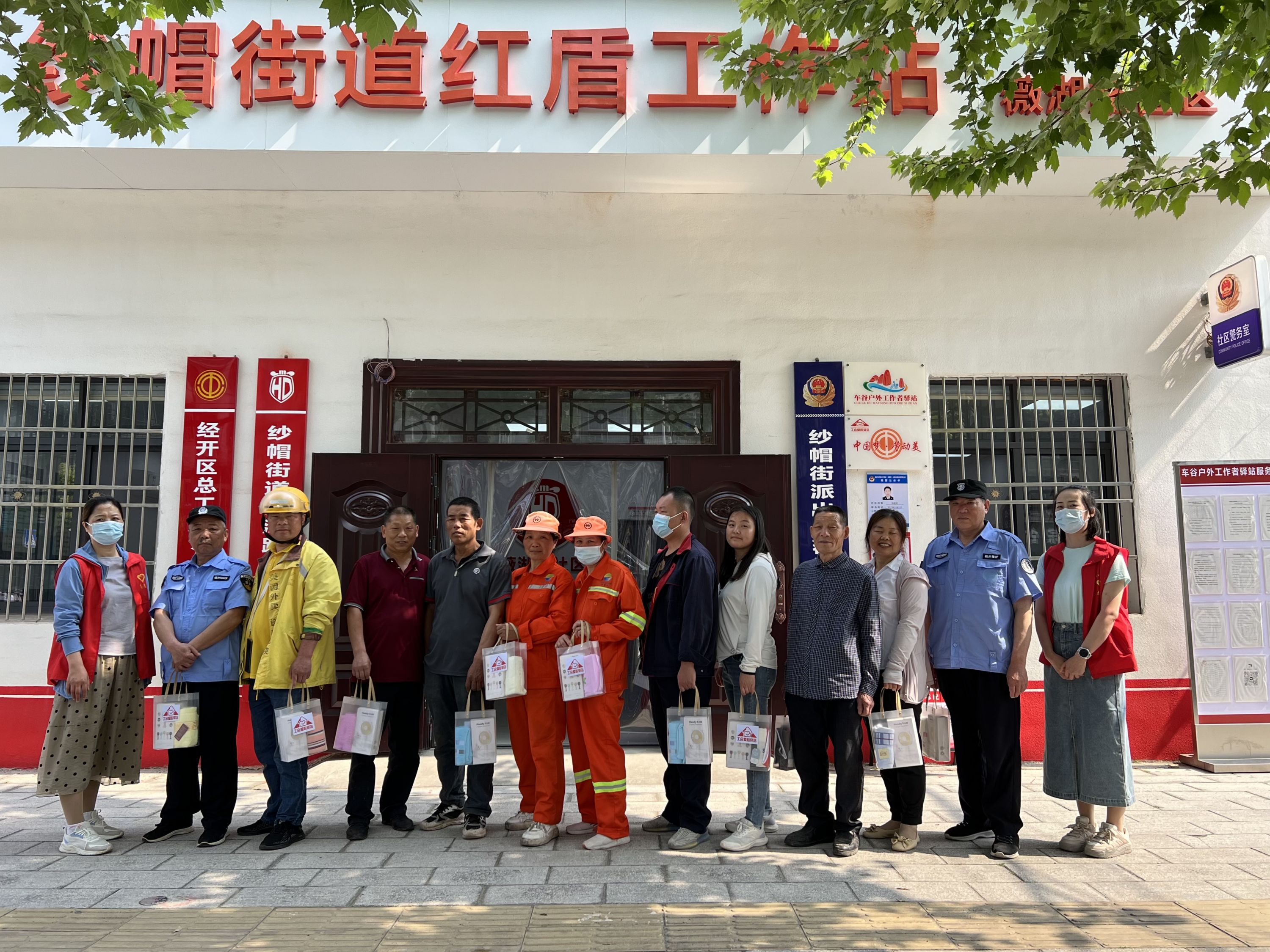 车谷融媒4月29日讯 4月26日,纱帽街道薇湖路社区红盾工作站工会爱心驿站开展“传承劳动精神 致敬最美的你”活动,组织快递小哥、外卖小哥、环卫工人等户外劳动者代表参加活动。