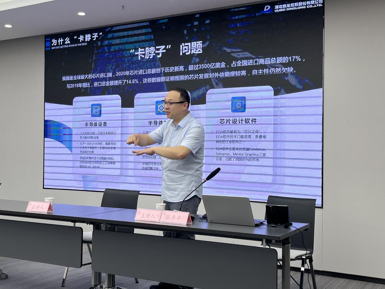 车谷融媒4月29日讯 春风送暖,勤学当时。4月25日,武汉经开区财政局“车谷财政大讲堂”诚邀鼎龙控股技术专家为全体干部职工授课,普及国产芯片产业相关知识。