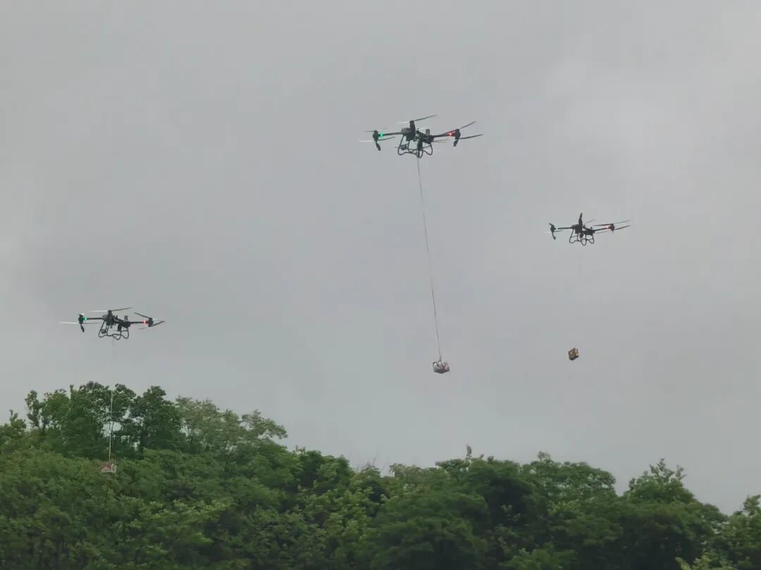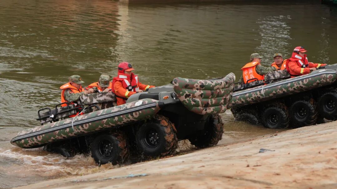 在水上联合搜救、抢险力量支援环节,无人机搭载自动救生圈,进行先行快速救援。水上机器人向“落水者”快速移动,辅助“落水者”爬上机器人,并将“落水者”拖拽至安全区域。参加演练的官兵驾驶山猫水陆两栖车,携带增援人员和救援物资前往搜救区域。无人机机群携带装有救援物资的空投箱迅速起飞,为“受灾地区”及时提供急需的物资支持。经过近1个小时的紧张救援,被困群众被安全转移,官兵们圆满完成了所有演练科目。