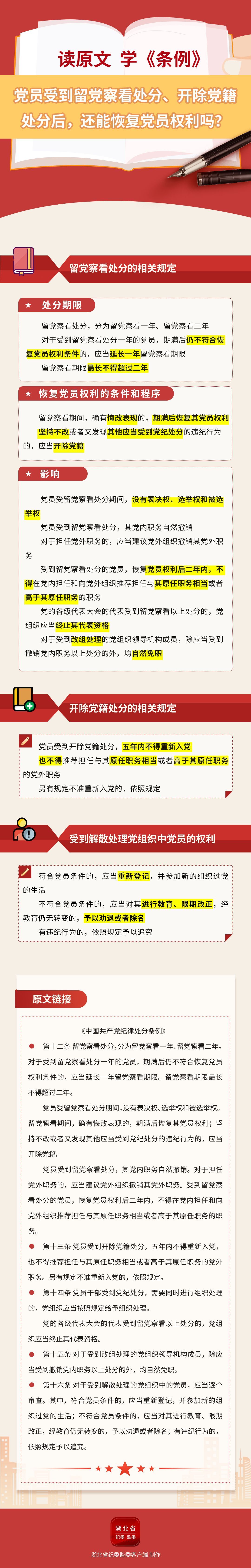 读原文 学《条例》| 党员受到留党察看处分、开除党籍处分后,还能恢复党员权利吗?