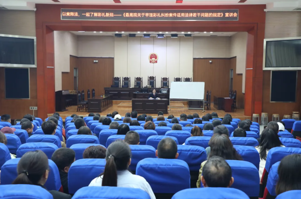 为坚持和发展新时代“枫桥经验”,深入推进诉源治理,倡导树立正确的婚嫁观念和简约适度的婚俗礼仪,近日,襄城区人民法院开展《以案释法 一起了解彩礼新规》法治讲座,辖区社区工作者、居民代表等一百余人参加活动。
