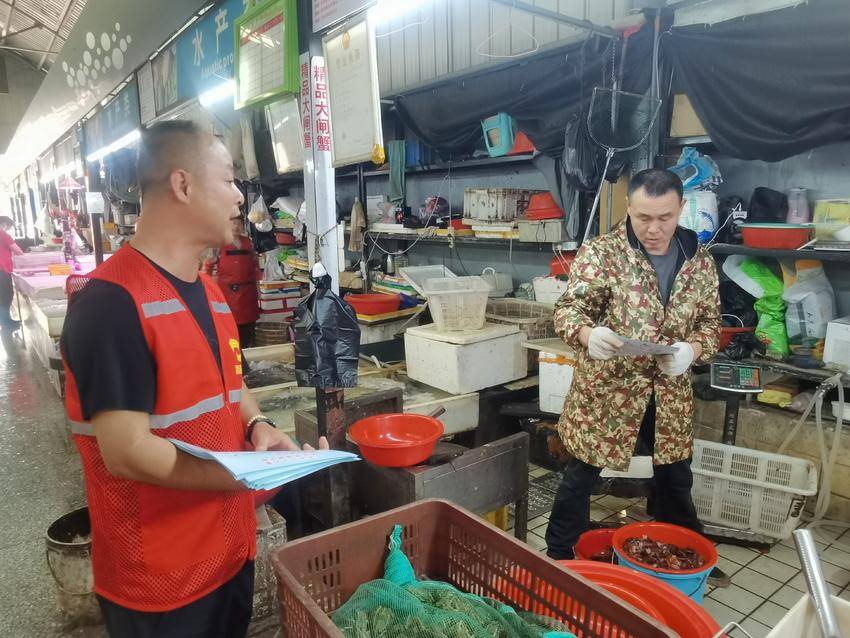 活动现场,工作人员通过悬挂横幅,铺设展台,发放宣传品,向周边过往的居民详细讲解了长江“十年禁渔”相关政策和法律法规知识,展示了长江“十年禁渔”的背景意义及取得的成效,号召群众自觉不捕、不买、不食野生江鱼。随后,工作人员深入市场水产区,查看是否存在售卖江鱼的情况,并向水产商户一一发放宣传单,认真学习禁渔政策法规,自觉做到不捕、不售长江鱼。