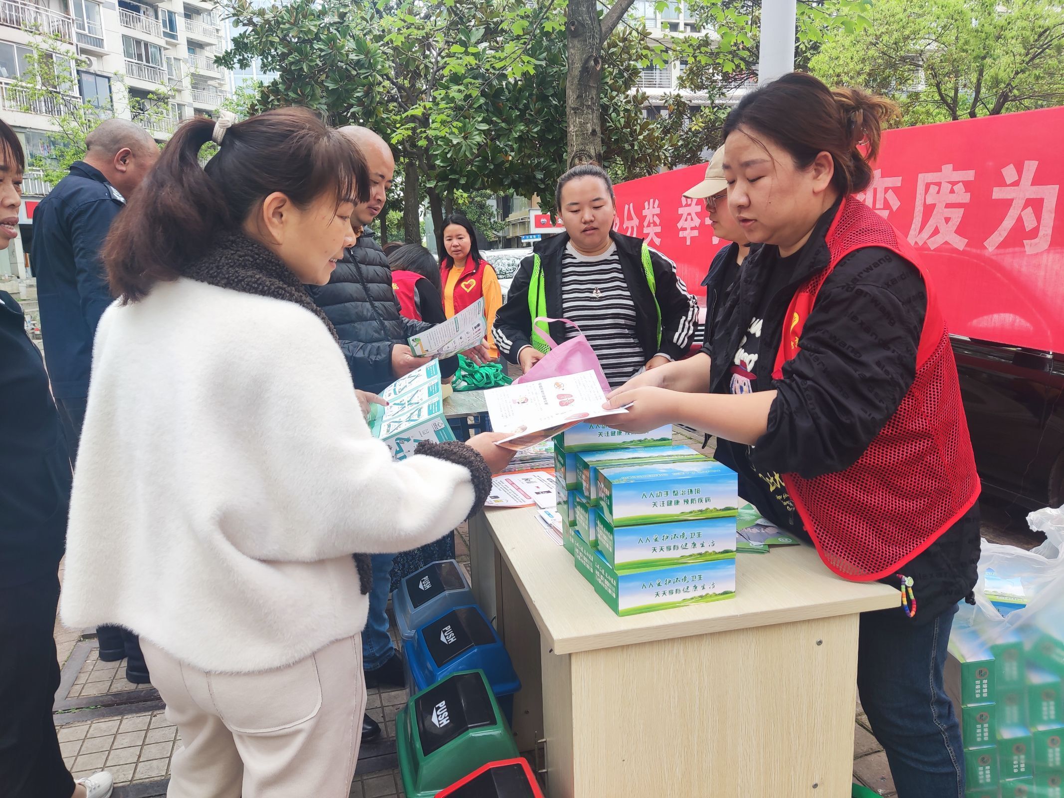 社区以“宣传-教育-督促”为先导,通过线上线下相结合的方式开展垃圾分类宣传教育活动,线上充分利用社区公告栏、微信公众号等平台,定期发布垃圾分类知识,营造浓厚的宣传氛围,同时,组织志愿者深入居民家中,进行一对一的讲解和指导,确保每户居民都能掌握垃圾分类的技巧。并定期举办垃圾分类知识竞赛、主题讲座等活动,提高居民参与垃圾分类的积极性和主动性。