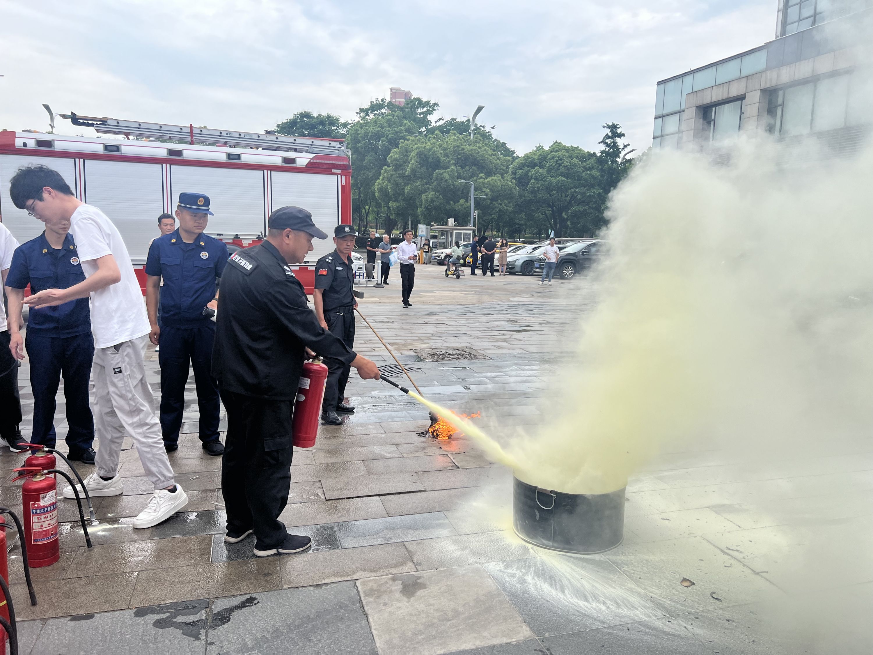 在消防演练环节,针对辖区内高层楼栋居多的特点,消防队长详细讲解了高层建筑防火基础知识、扑救初期火灾的措施、火场自救逃生的方法和注意事项,并现场演示灭火器的正确操作,总结“提拉握拔”四字口诀,使现场人员迅速掌握了灭火器的使用要领。