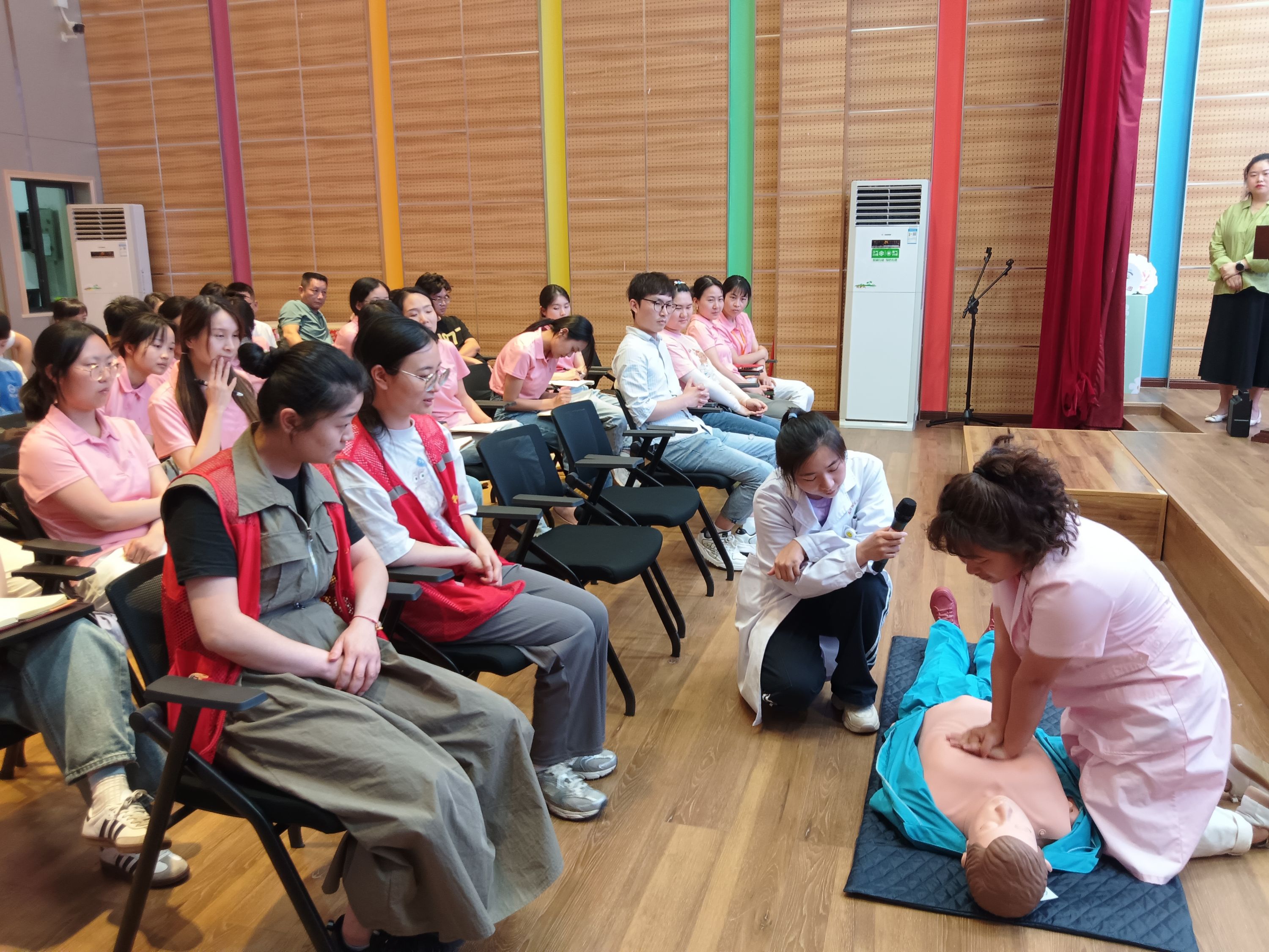 除了灭火,还要清楚如何救人。沌口医院医护人员讲解了急救知识,并在现场演示伤员心肺复苏的正确操作,例如如何识别动脉、心肺复苏按压次数及深度,让大家更直观地了解危难情形,在医护人员的指导下,学习如何正确地进行心肺复苏操作。
