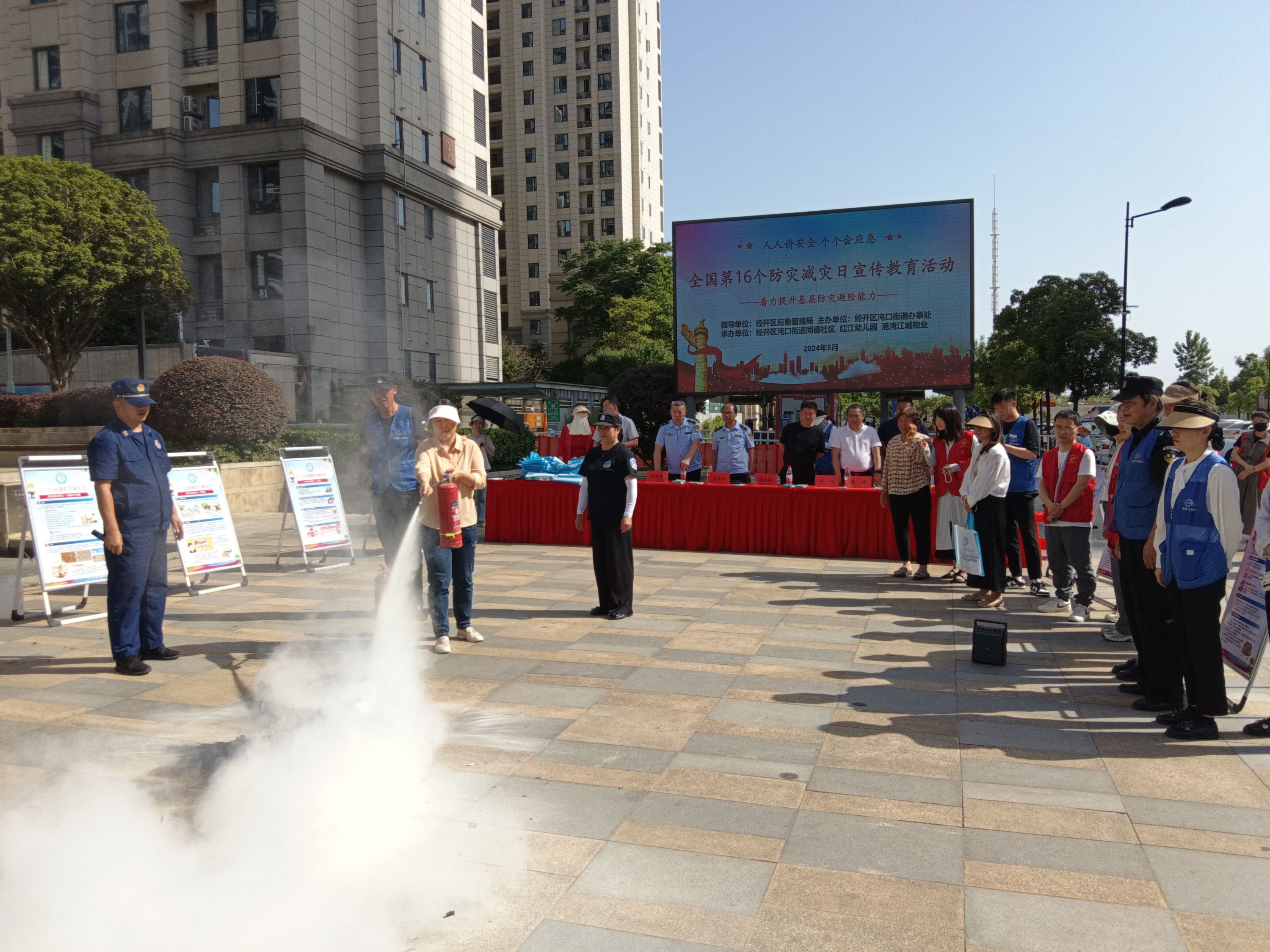 随后,沌口专职消防队进行防灾减灾宣传,现场讲解了灭火知识,并开展灭火演练。现场人员纷纷上前学习,拿着常见的灭火器了解哪是保险环,如何喷射,实际感受灭火器的喷射压力等等。