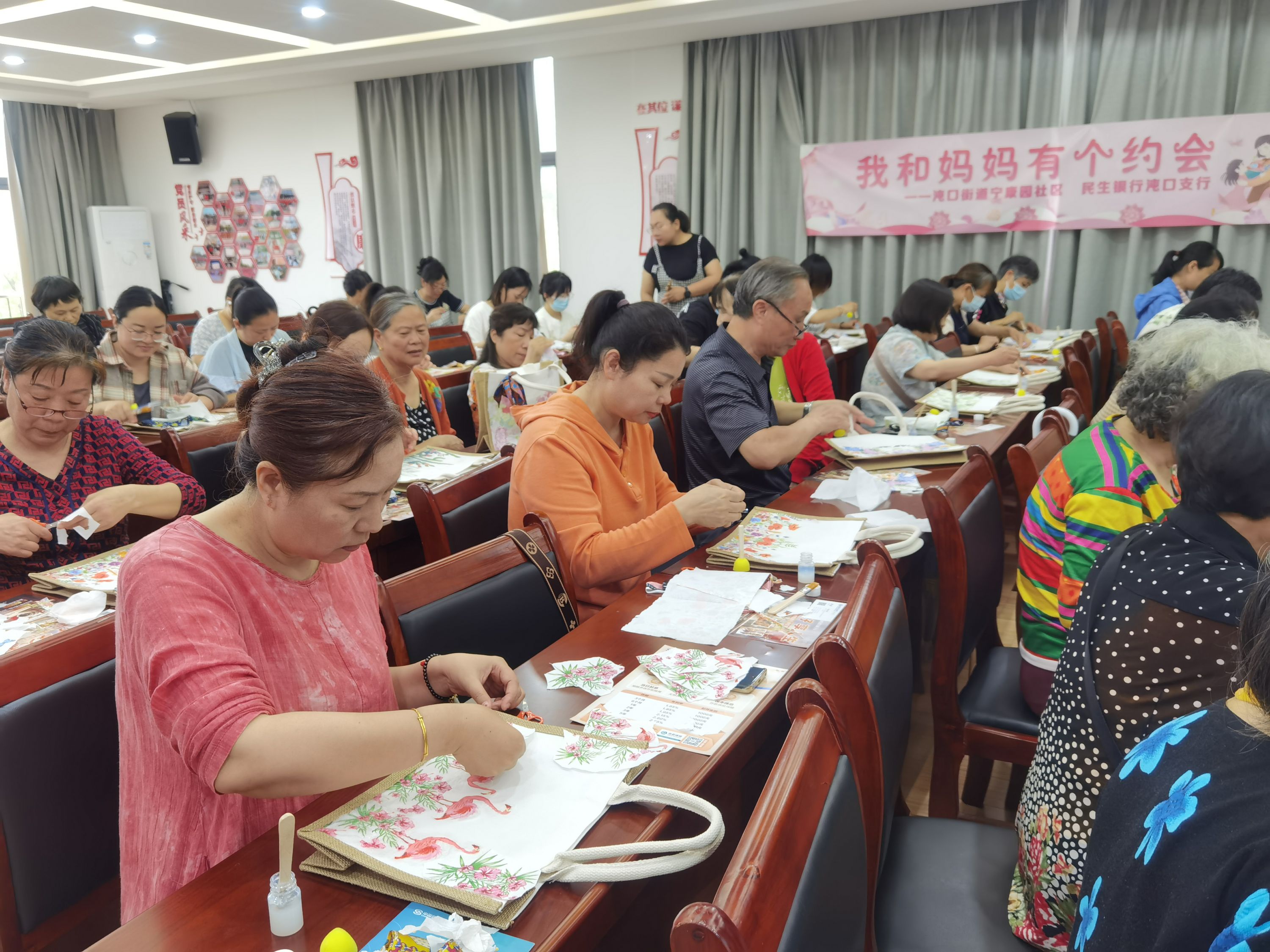 车谷融媒5月15日讯 5月11日,沌口街道宁康园社区联合辖区共建单位民生银行沌口支行举办“我和妈妈有个约会”母亲节主题活动,蝶骨巴特包DIY手工活动,吸引了辖区40余人参与。