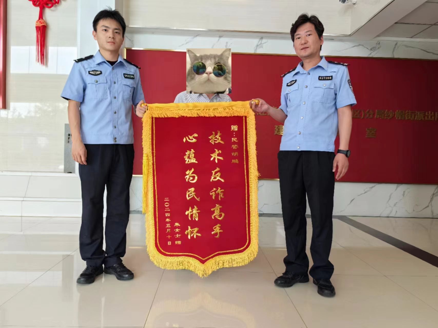 5月11日上午,武汉经开区纱帽街市民张女士专程来到武汉经开区公安分局纱帽街派出所,将一面印有“技术反诈高手 心蕴为民情怀”的锦旗送到了办案民警手中,以表谢意。