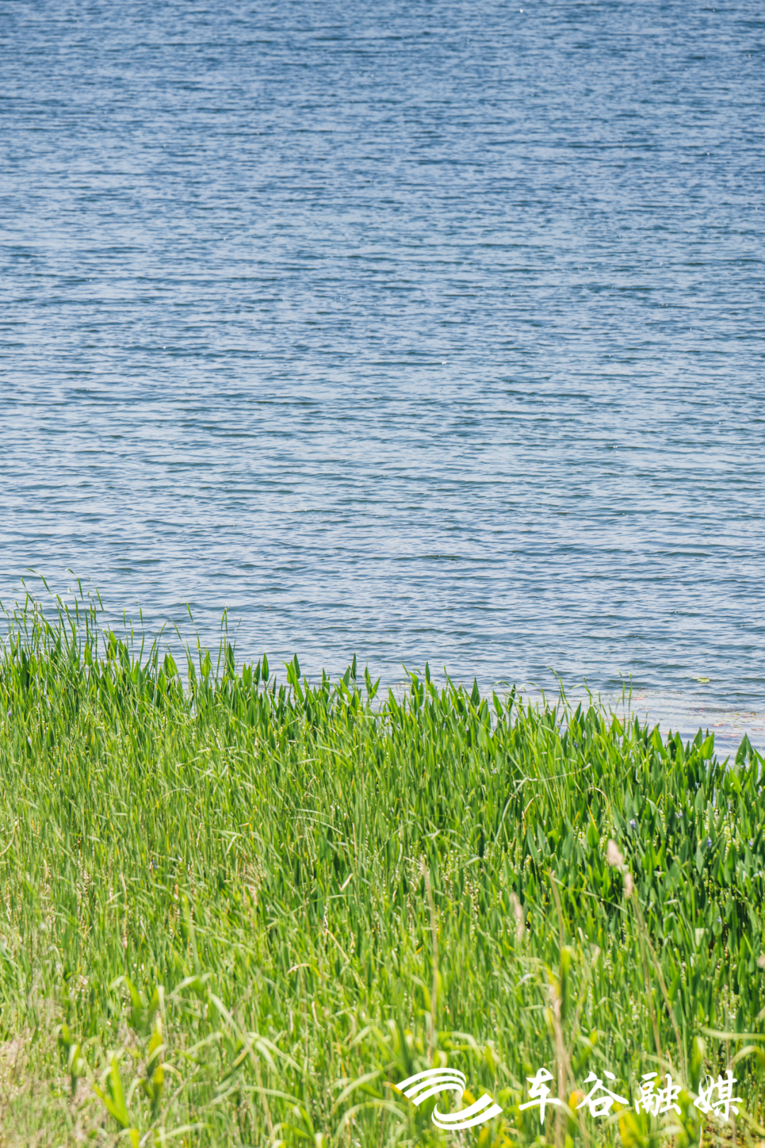 湖畔草地满是新鲜嫩芽,茂盛的生命力沿着湖水往四周蔓延,构成由深至浅、由繁茂至新盛的底色。