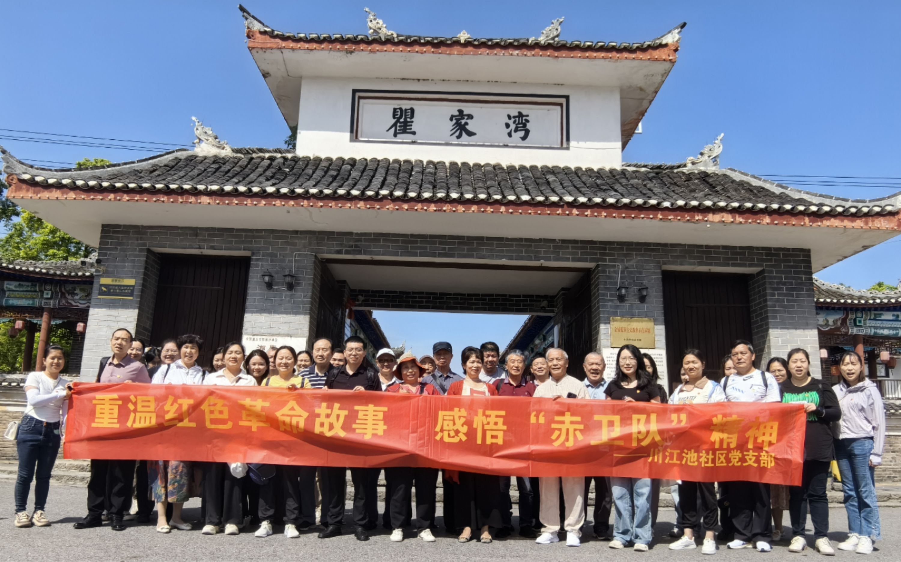 车谷融媒5月17日讯 “洪湖水呀,浪呀嘛浪打浪啊,洪湖岸边,是呀嘛是家乡……”伴随着欢快的歌声,5月15日下午,军山街道川江池社区支部党员、流动党员和积极分子共计40余人,集中前往瞿家湾湘鄂西革命根据地旧址开展5月份支部主题党日+“重走红色之旅”主题教育,进一步加强支部党员、流动党员与入党积极分子的互相学习、相互交流,让红色主题教育活起来、动起来、实起来。