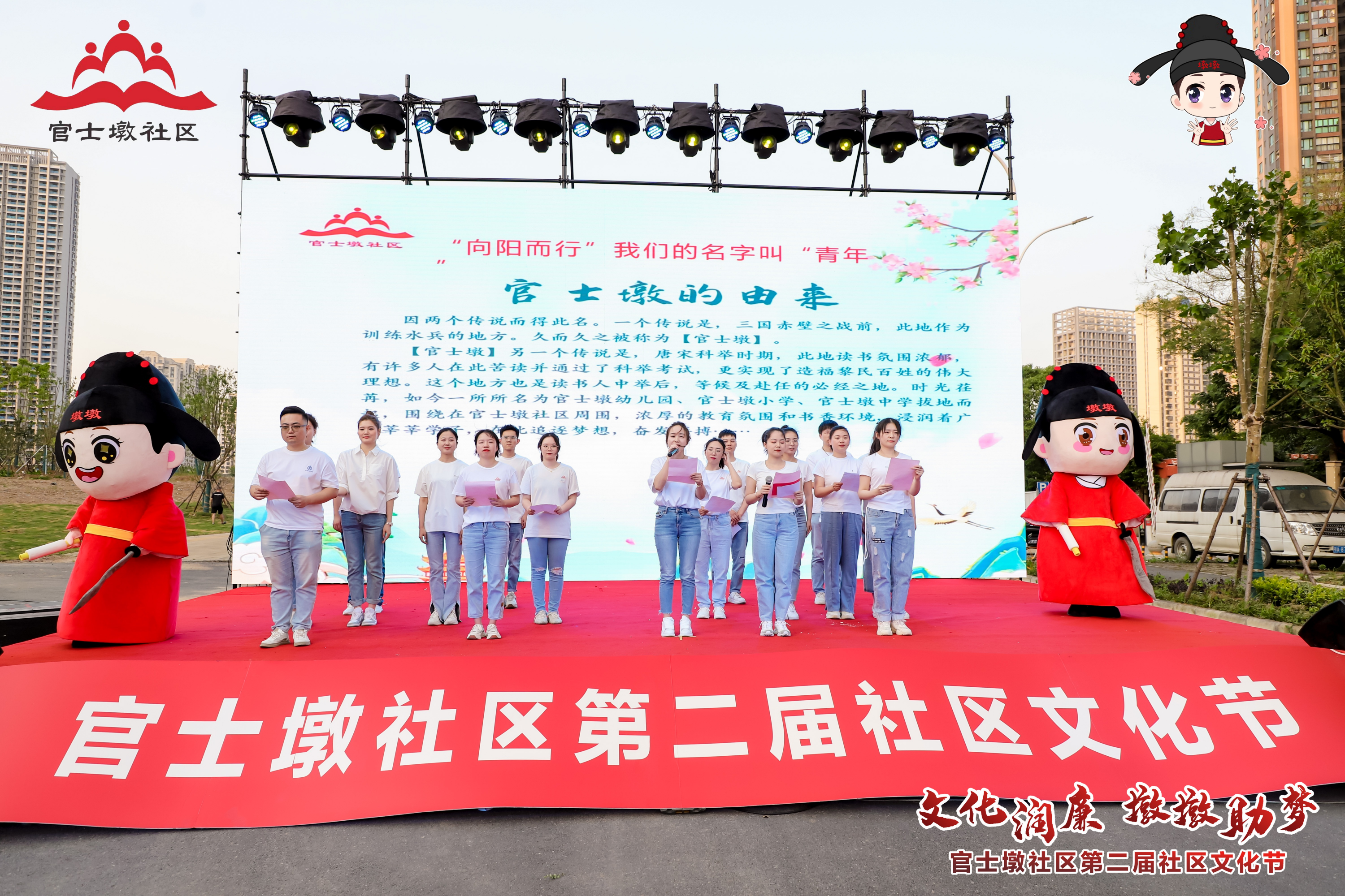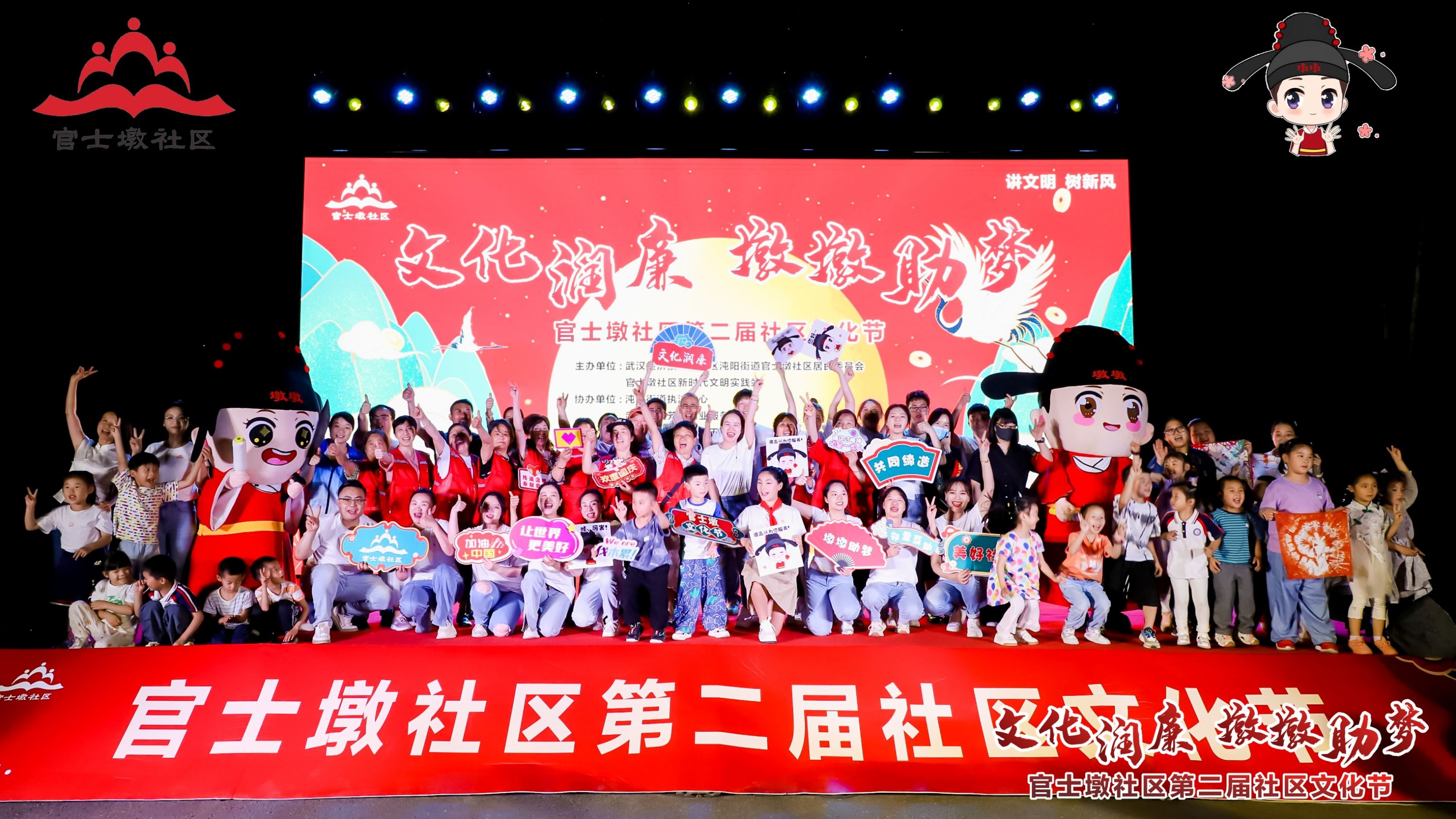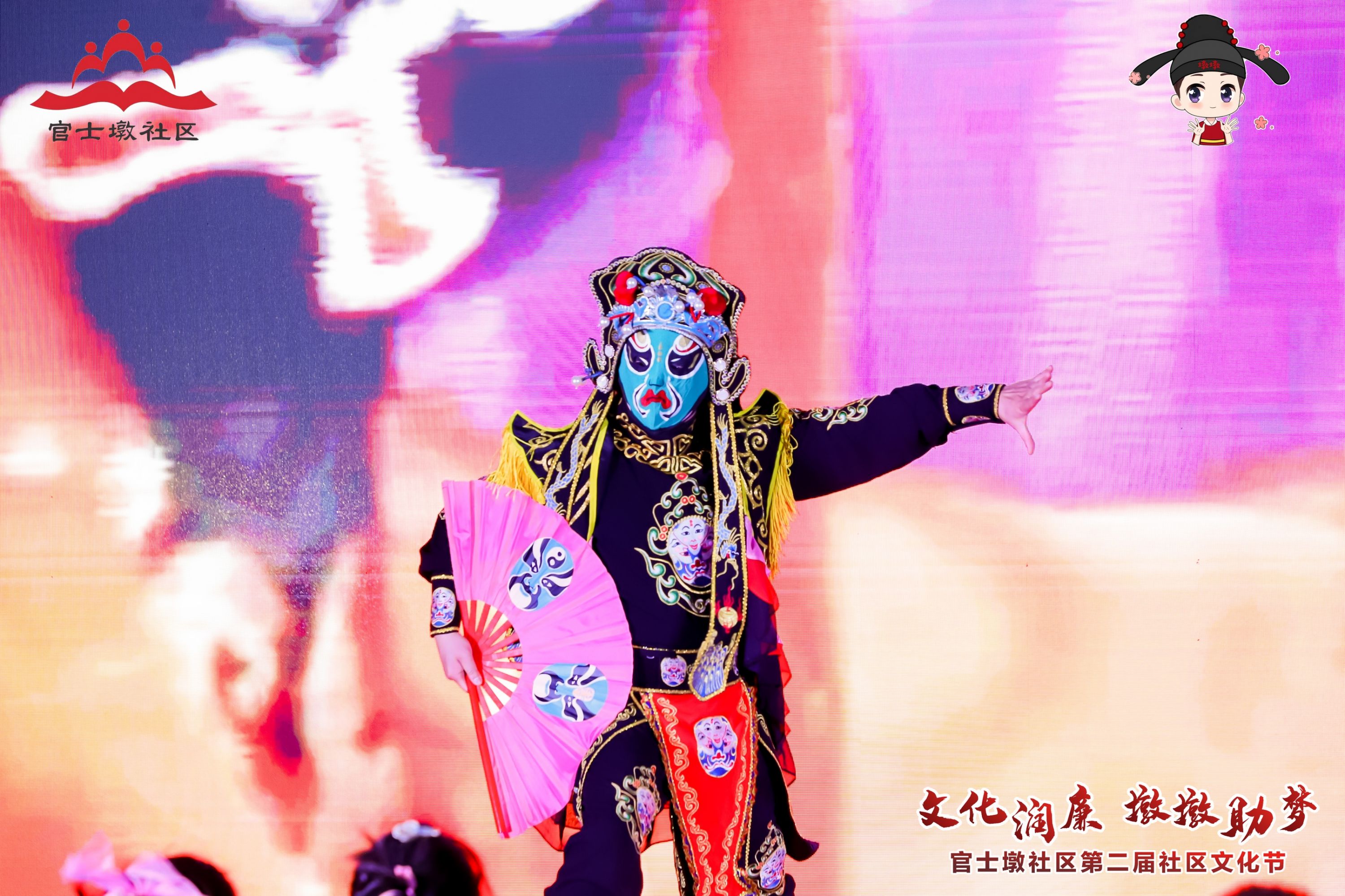 “春去秋来,从金戈铁马到唐诗宋词……”追溯历史起源,社区创作表演《官士墩的传说》诗歌朗诵。当社区工作人员和吉祥物墩墩在舞台上深情朗诵时,朗朗之声,引起了大家共鸣。官士墩幼儿园、小学、中学,共建单位江汉大学都分别带来了皮影戏、课本剧、音乐剧和活力舞蹈的节目,为文化节增添了青春活力,也体现了社区文化生生不息、全面发展的良好氛围。另外,特色表演京剧《说唱脸谱》、川剧《变脸》更是把活动推向了高潮。