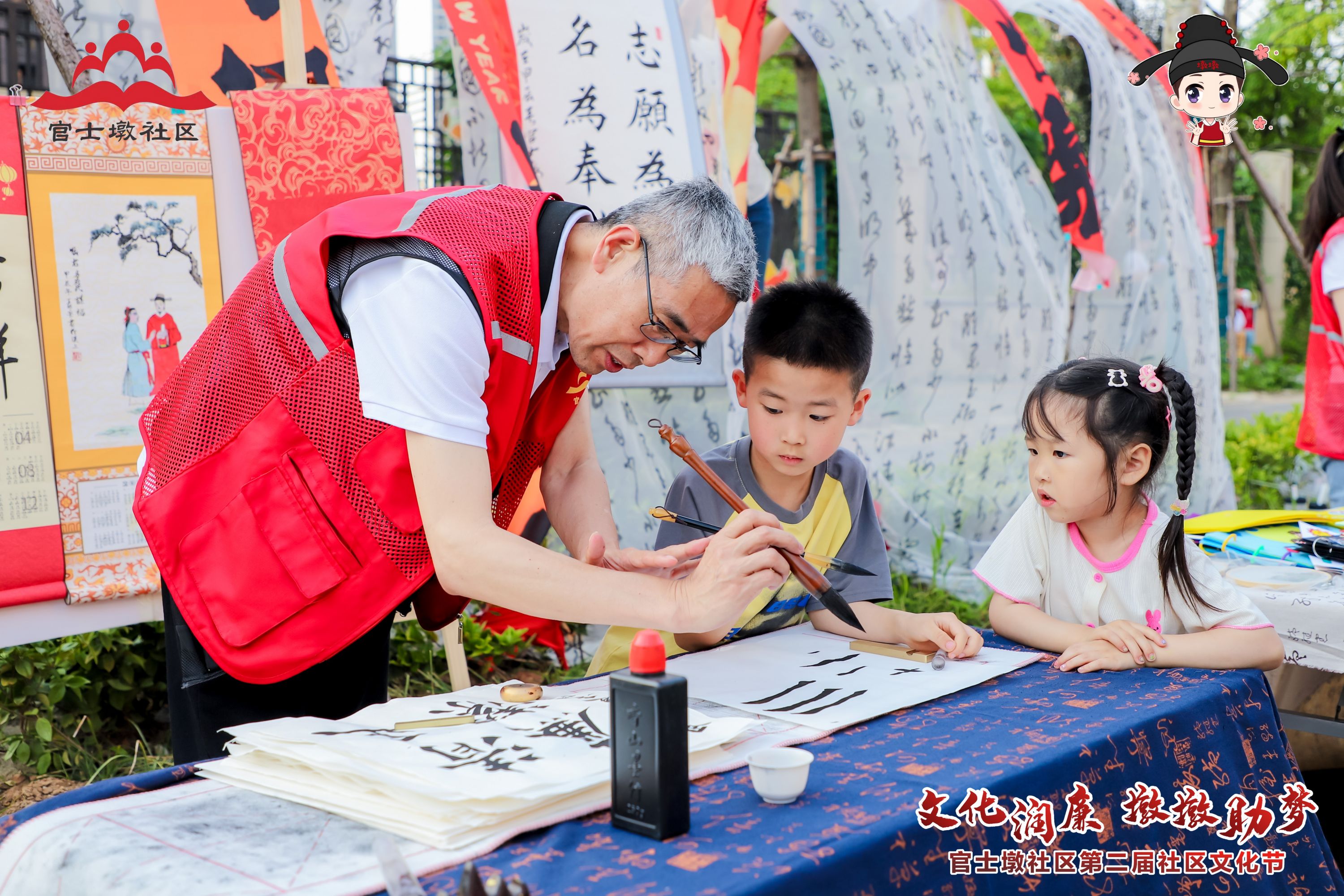 活动现场设置了国风茶艺互动,居民可以学茶文化、赏茶艺秀、品茗茶香、探讨交流。以亲子手作区设置艺术扎染、团扇制作,以传统工艺体验,提高孩子对传统文化的认识。以墩墩为主题,创作墩墩人偶、微信表情包、专属印章、桌摆、便利贴、手机支架、钥匙扣等文创产品,由“小太阳墩墩团”制作的传统文化亲子手工书,弘扬清廉文化、志愿精神的诗词书画作品。