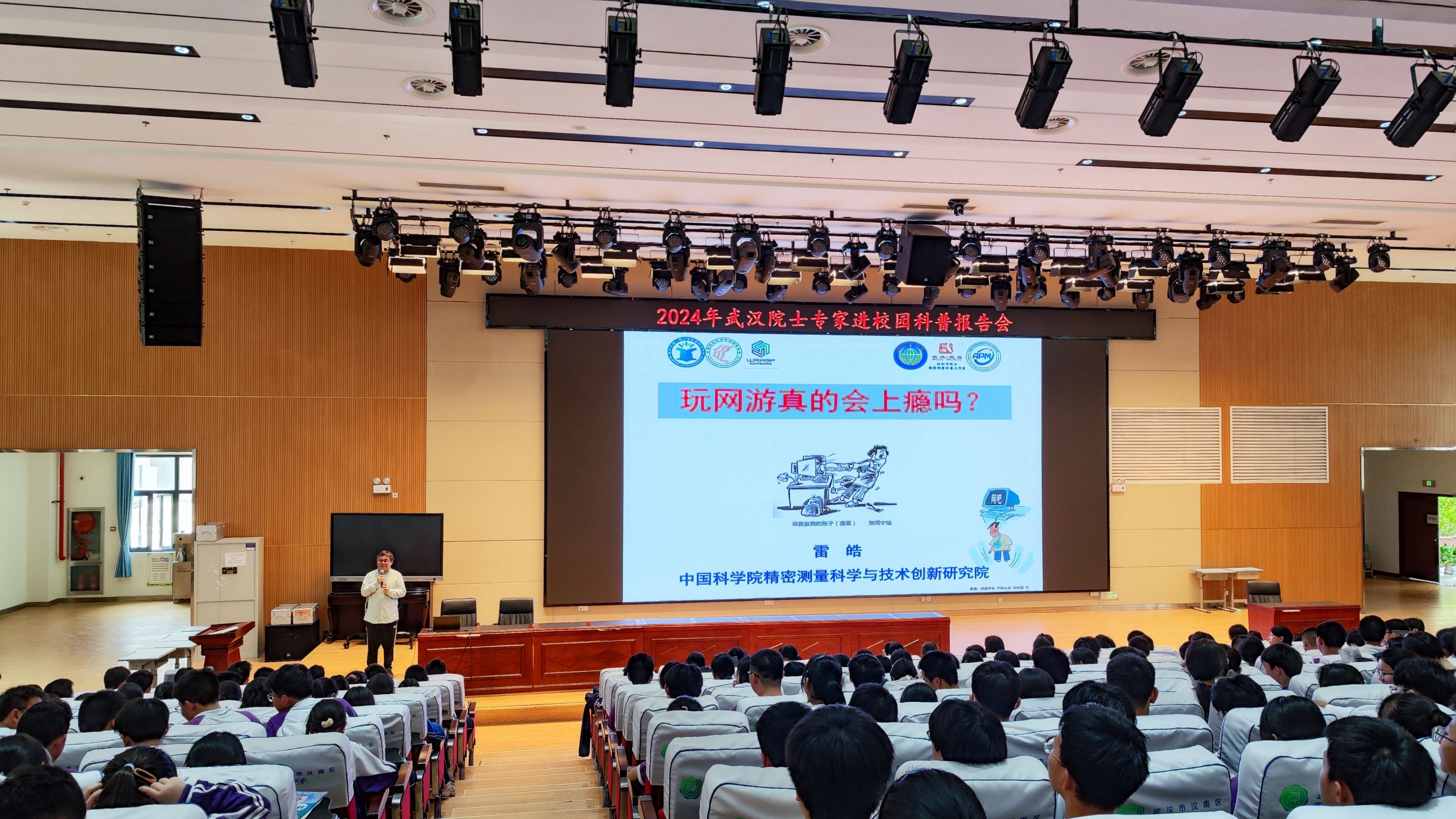 车谷融媒5月17日讯 “玩网游真的很上瘾吗?”5月7日,武汉市汉南区育才中学开展了一场精彩的科学报告,中国科学院精密测量科学与技术创新研究院研究员、博士生导师雷皓对育才中学八年级学生提出疑问。