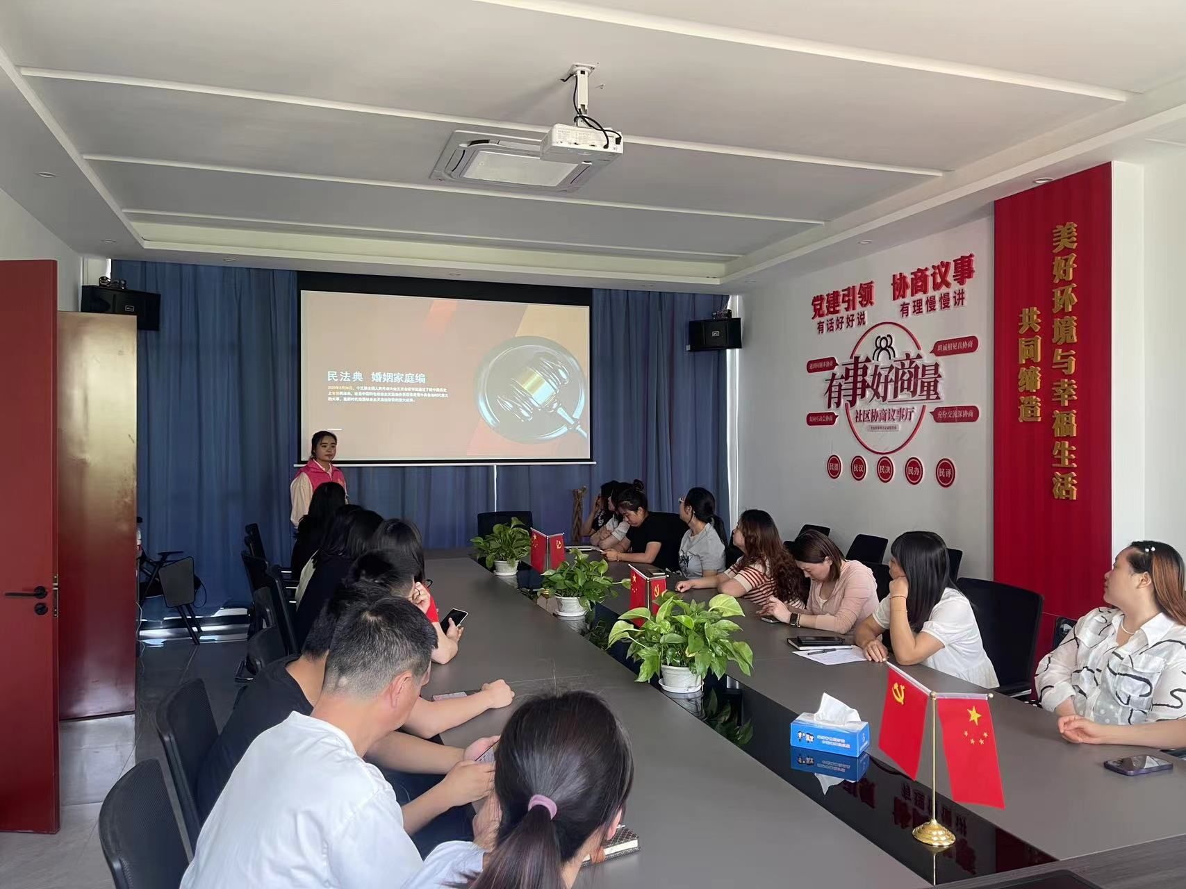 车谷融媒5月17日讯 5月15日,沌阳街道佳泰社区妇联开展《民法典-婚姻家庭》法治宣传知识科普讲座,邀请社区律师郭斯炜为居民讲解《民法典》婚姻家庭编的内容。