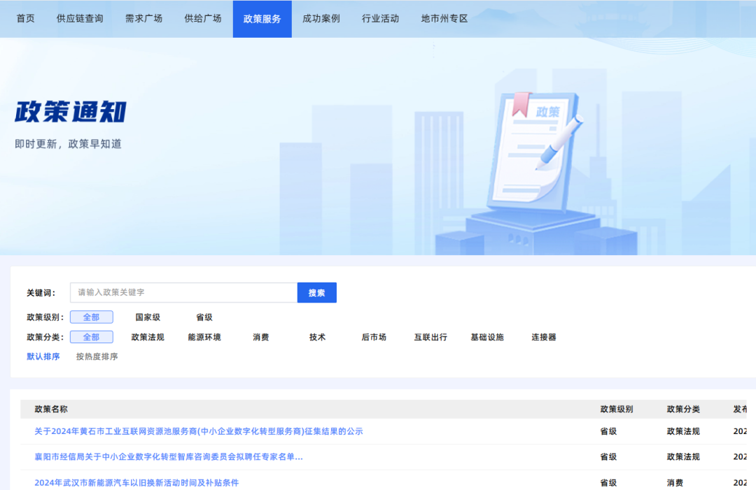长江汽车链平台还搭建了全面、权威的政策数据库,为企业提供高效、便捷、精准的政策检索服务。企业可以通过平台快速了解相关政策,简化申报流程,降低运营成本,提高市场竞争力。