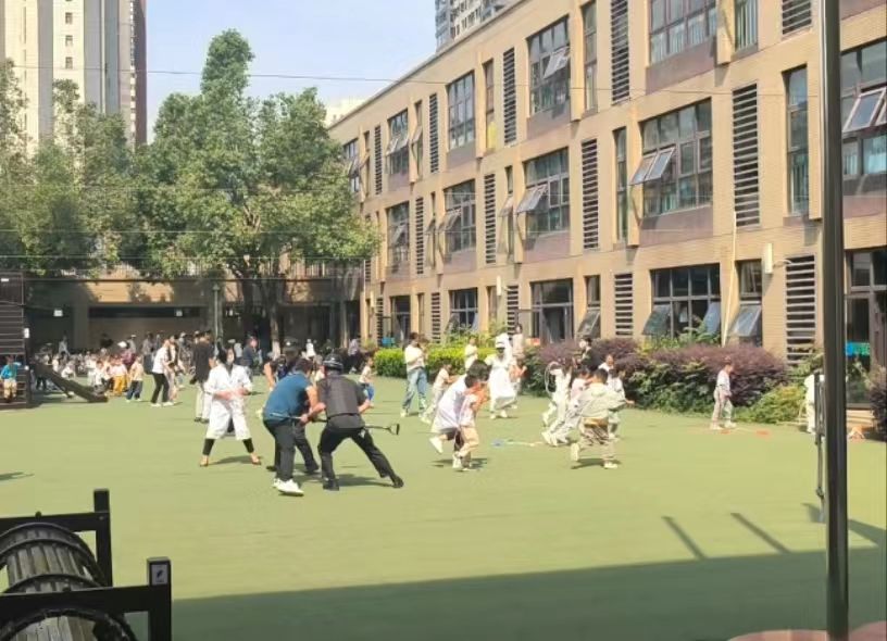 孩子们看到暴徒被警察扭送上警车的场景,情不自禁地鼓掌和欢呼,“谢谢保安爷爷!谢谢警察叔叔!”的稚嫩童音在校园雀跃的回荡。