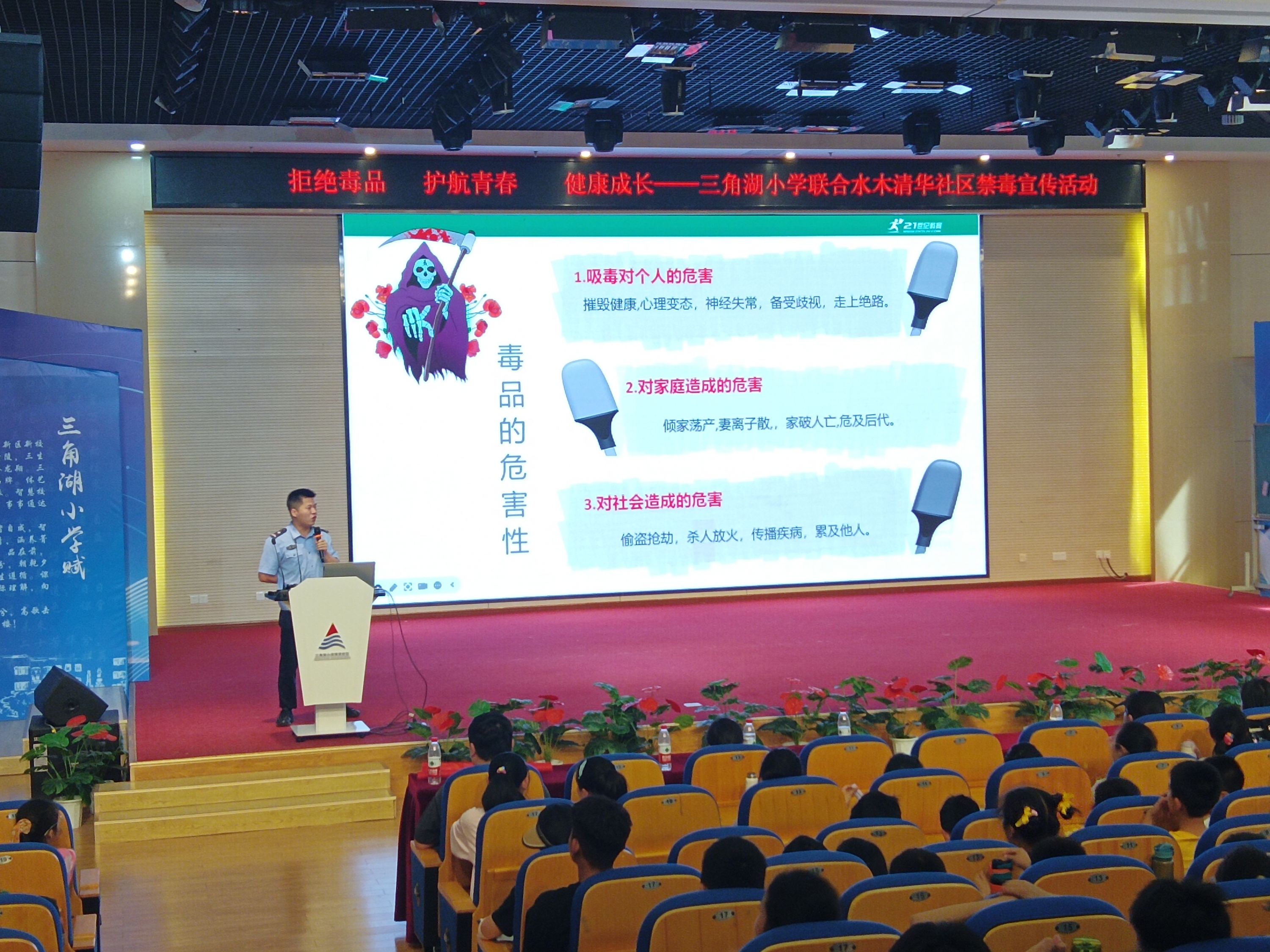 车谷融媒5月23日讯 5月16日,沌阳街水木清华社区联合湖滨派出所在三角湖小学开展“拒绝毒品,护航青春,健康成长”主题禁毒宣传活动。