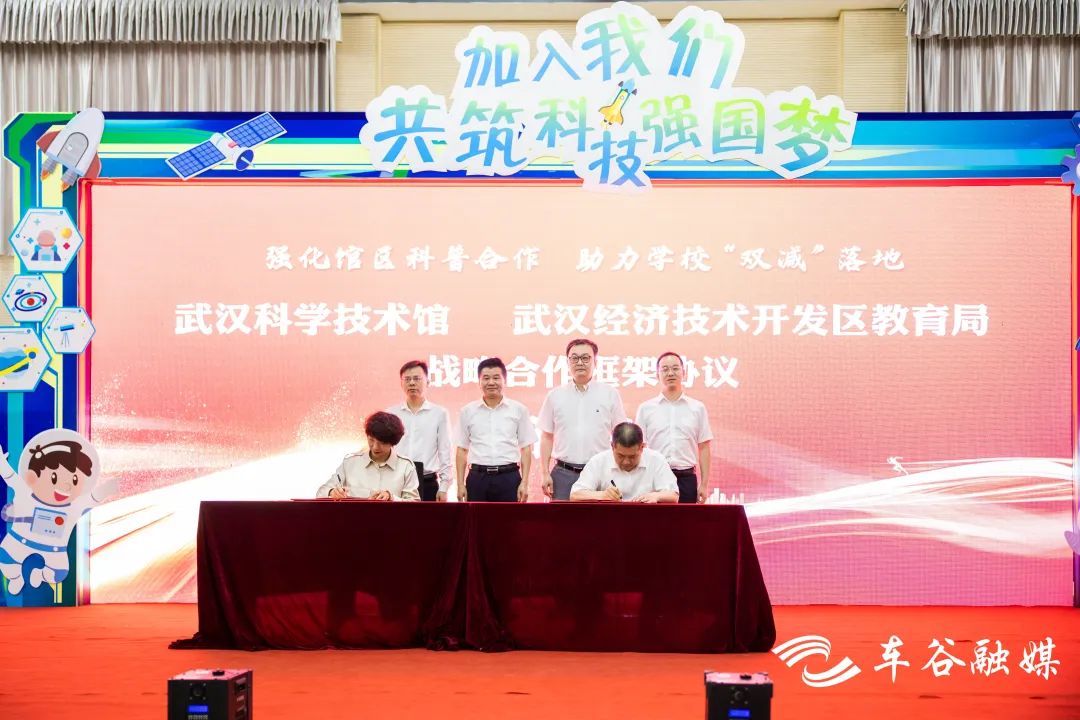 车谷融媒5月23日讯 5月22日,武汉经开区教育局与武汉科学技术馆签署科普工作战略合作协议,双方将在科普教育领域展开深入合作,共同推进科学知识普及、科普人才培养等工作。当天,武汉科技馆青少年科学素养提升行动暨2024年武汉经开区实验小学科技节正式启动。