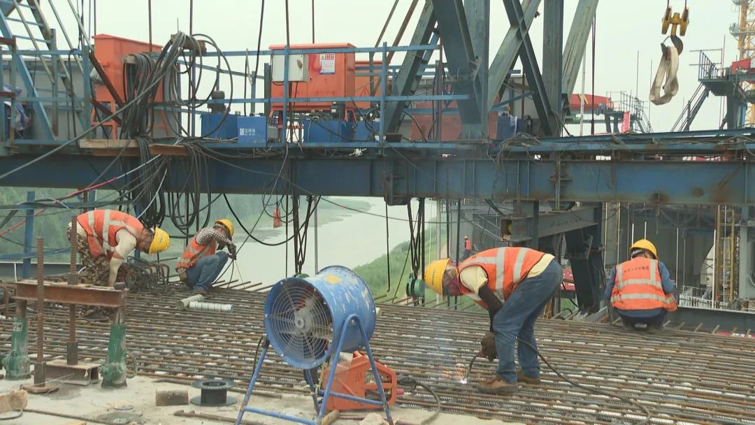 在通顺河3号特大桥施工现场,塔吊林立、机械轰鸣,建设者们正有条不紊浇筑混凝土、焊接安装波形钢腹板,现场一派繁忙。王超说,“通顺河3号特大桥原计划今年11月合龙,按照目前的建设进度,有望提前三个月、在今年8月合龙,为武松高速武汉段明年5月通车奠定基础。”