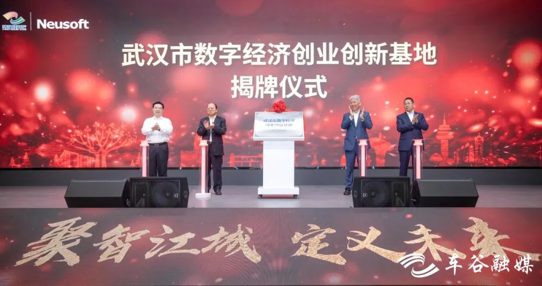 当天,武汉经开区与东软集团再度携手,共建武汉市数字经济创业创新基地,基地将快速聚集一批东软生态科创企业落地经开区,助力车谷科技创新发展。刘子清、汪元程、刘积仁、荣新节为武汉市数字经济创业创新基地揭牌。
