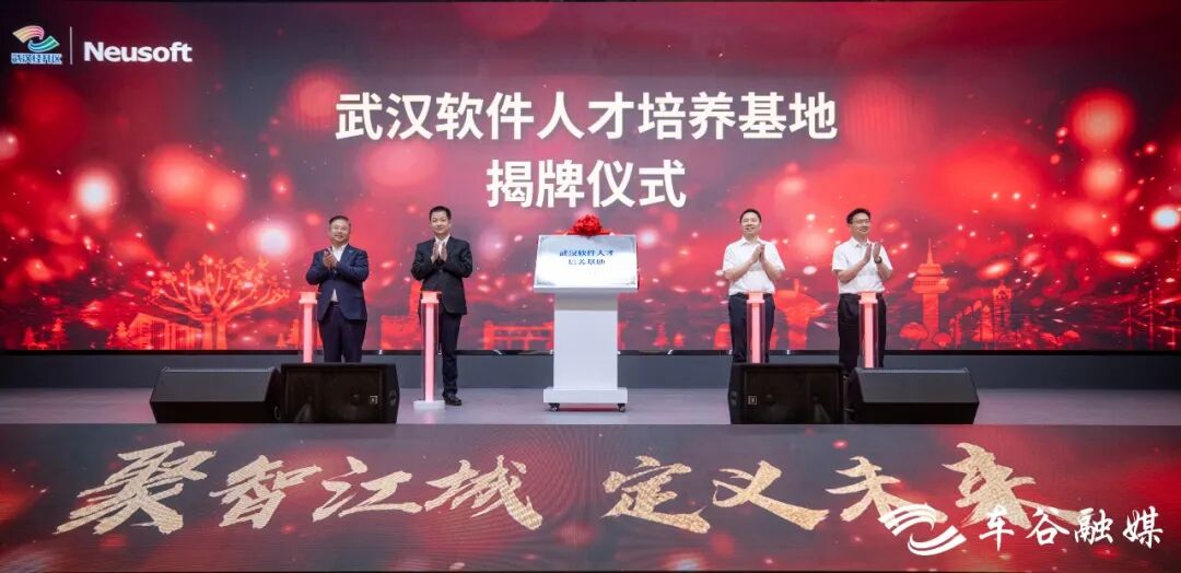 人才是软件产业发展的核心动力。武汉软件人才培养基地同时成立,将致力于规模化培养高素质人才,为武汉软件产业和智能网联汽车产业的人才需求与创新发展提供有力支撑。唐超与东软教育科技集团高级副总裁李印杲、江汉大学校长景新华、武汉商学院校长彭瑜共同为武汉软件人才培养基地揭牌。