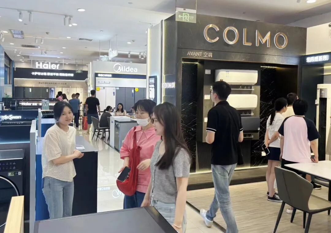 店长杨莉介绍,为了迎接销售旺季,格力电器奥林花园店增加了库存,导购、安装师傅也比往年多,可以做到三天内即买即送即安装,“多重利好政策叠加,我们店今年7-8月营业额预计将增长50%。”