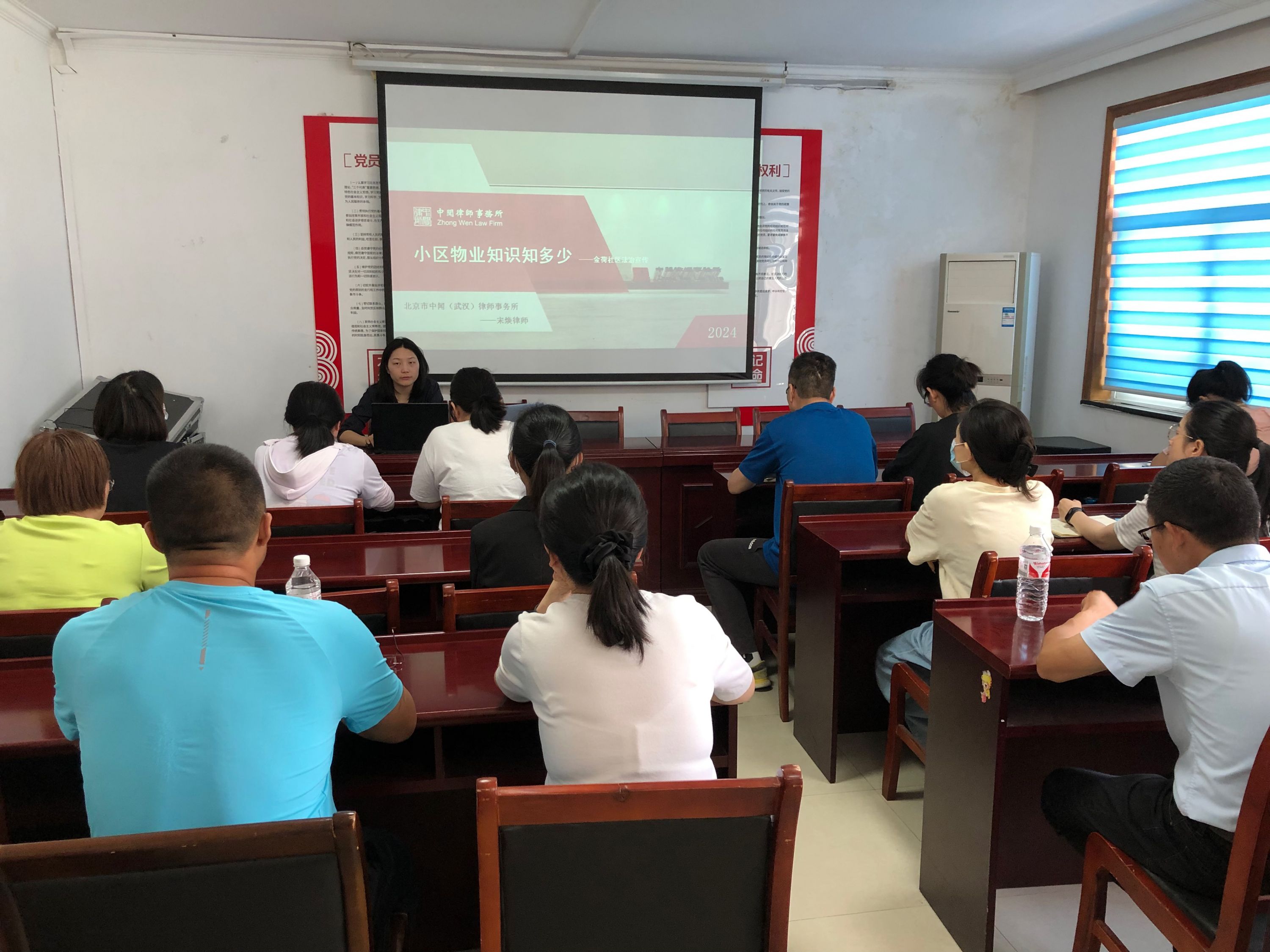 车谷融媒5月29日讯 5月21日上午,沌阳街道金荷社区新时代文明实践站联合辖区北京市中闻(武汉)律师事务所开展“《民法典》时代下的物业管理”法制宣讲活动,邀请辖区物业公司负责人、业委会代表、社区微网格长等共计30余人参加。
