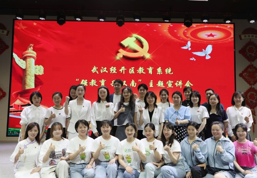 车谷融媒5月29日讯 5月28日下午,武汉经开区教育系统在汉南育才二小举行“强教育 兴汉南”宣讲活动。汉南片区中小学、职校、幼儿园150余名领导干部教师参加此次活动。